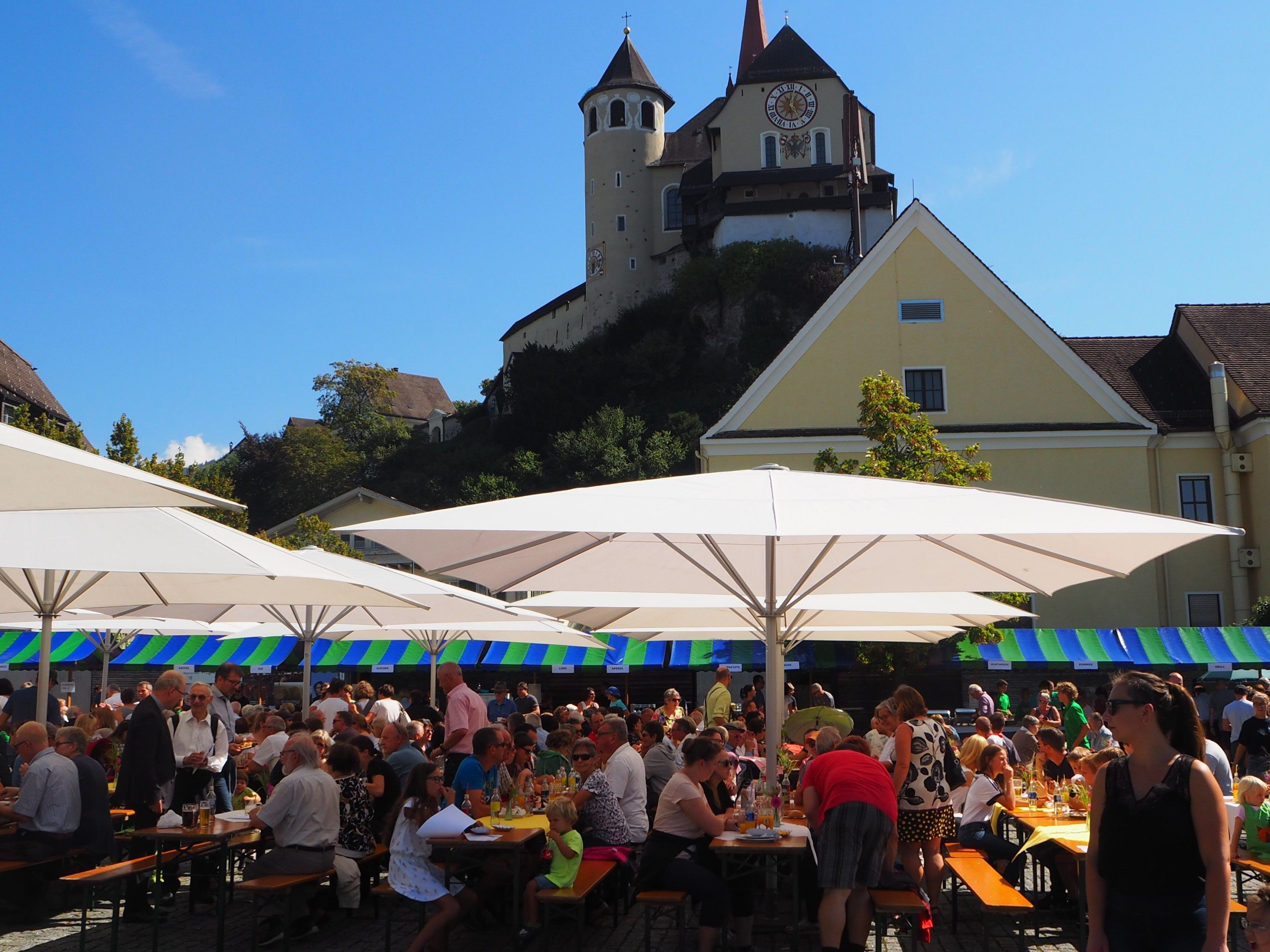 Der gemütliche Teil des Fests, wie eingangs erwähnt, ging dann bei spätsommerlichem Traumwetter über die Bühne. Die Verpflegungsstände, allen voran der Grillstand, wurden regelrecht gestürmt. Die Menschen genossen die Sonne, das gemeinsame Gespräch und die meisten Rankweiler Küchen blieben am Sonntag außer Betrieb. Neben klassischen Grillköstlichkeiten und duftenden Pommes Frites für die Kinder, servierten die Veranstalter zudem ein zur Jahreszeit passendes Pfifferlings Ragout.