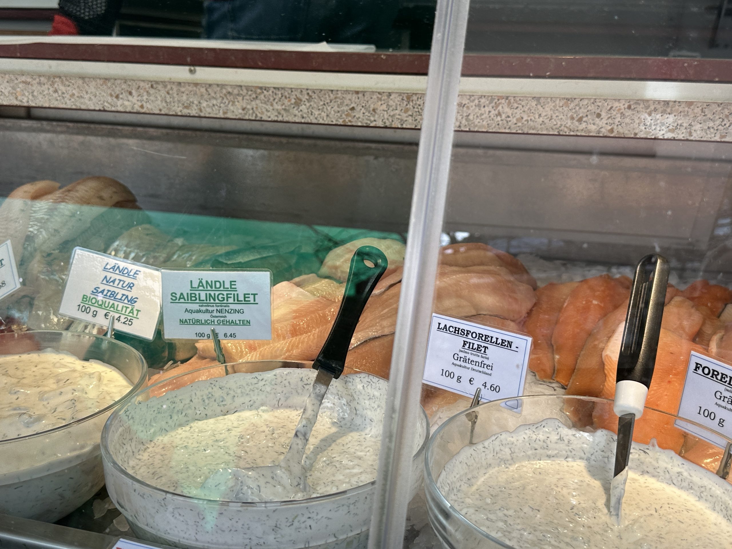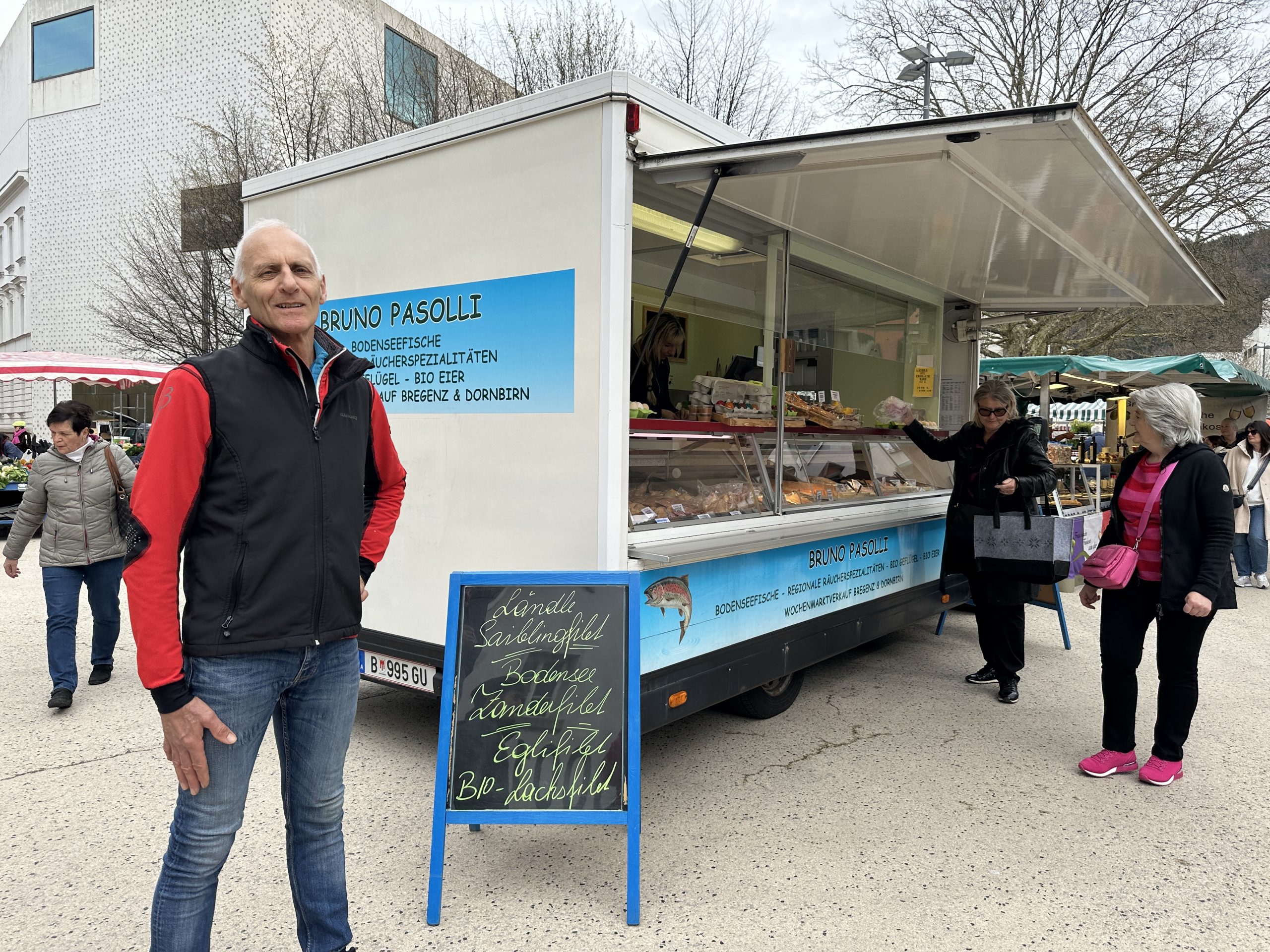 Bruno Pasolli ist einer von derzeit drei Fischverkäufern am Markt in Bregenz. "Es wird generell viel Fisch gegessen", meint er gegenüber VOL.AT. "Speziell am Freitag brauchen wir viel und speziell Karfreitag, Aschermittwoch sind die Tage, wo schon einiges mehr Fisch gegessen wird." Bei Pasolli gibt es neben Bodenseefisch auch Meeresfische, aber auch regionalen Räucherspezialitäten, Bio-Geflügel und Eier hat er im Angebot. Sehr gefragt sind laut dem Händler Ländle-Saibling aus Nenzing und Bodenseefische Zander und Egli. Biolachs, Heilbutt und Kabeljau schmecken den Vorarlbergern ebenfalls.