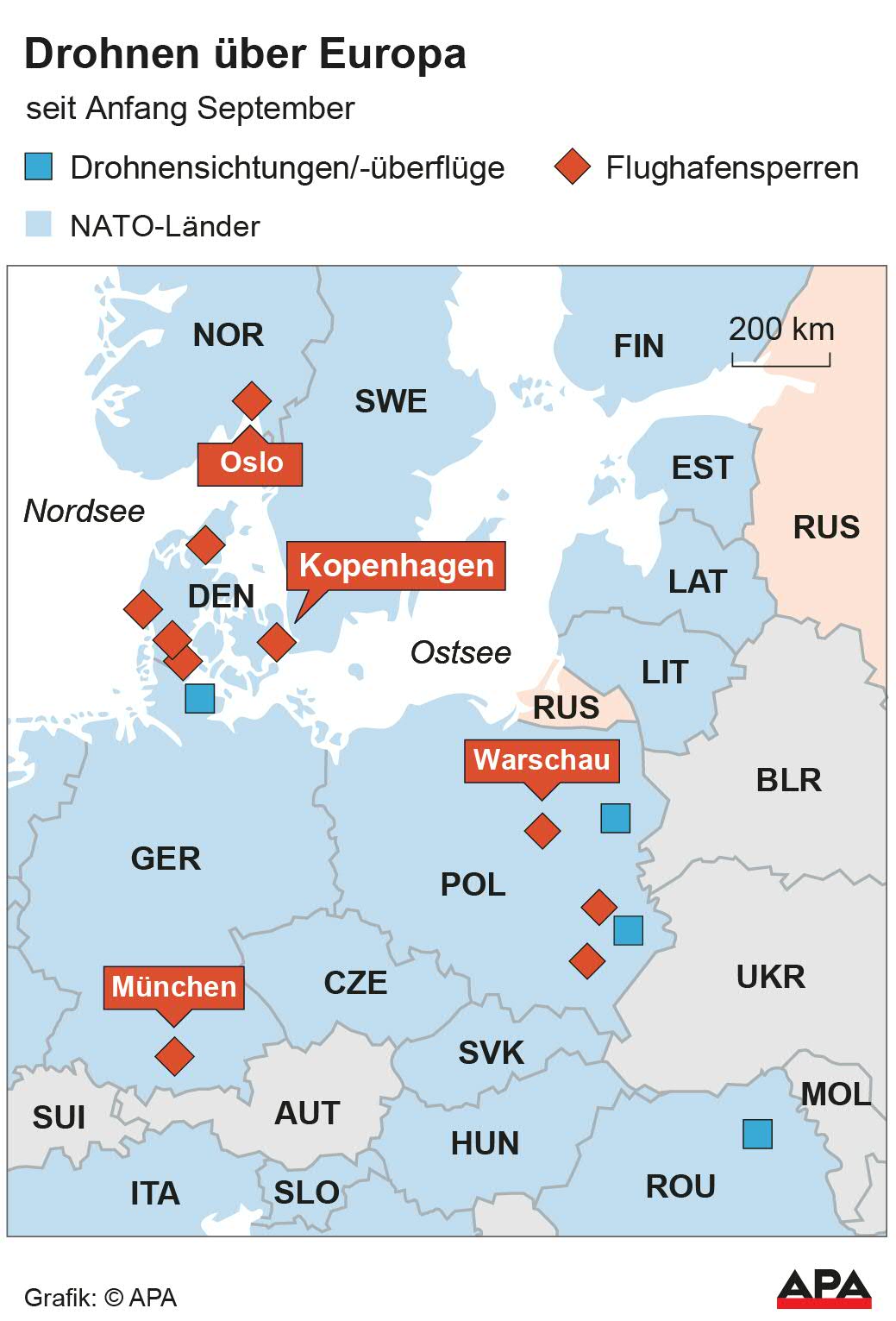 Alle Drohnensichtungen seit Anfang September. ©APA