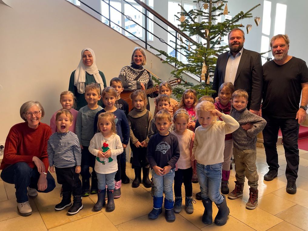 „Die Begeisterung der Kinder für die Adventzeit ist jedes Jahr spürbar. Es freut mich besonders, dass sie mit ihrem selbstgestalteten Christbaumschmuck wieder ein Stück Weihnachtsstimmung ins Rathaus bringen“, sagte Bürgermeister Markus Fäßler beim gemeinsamen Schmücken.