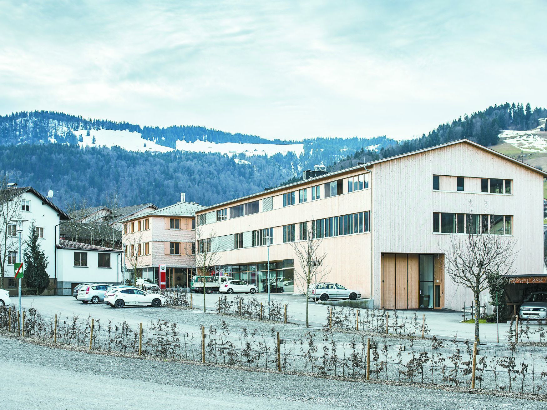Wo früher die größte Sennerei des Bregenzerwaldes stand, steht nun eines der größten Gebäude von Schwarzenberg oder eigentlich ein großes und knapp daneben ein verhältnismäßig kleines. Ihre Lage könnte besser nicht sein. Direkt daneben liegen die Volksschule, das Gemeindeamt, der Angelika-Kauffmann-Saal, ein Café und auch die Kirche bzw. das historische Zentrum der kleinen Gemeinde sind nicht weit. Während hier das Alte liebevoll bewahrt wird, wird im neuen Sennhus das Traditionelle im Sinn und mit den Mitteln von heute weitergedacht. Getragen von der Idee des Bauherrn Bertram Dragaschnig, dass Schwarzenberg ein neues wirtschaftliches Dorfzentrum braucht.
