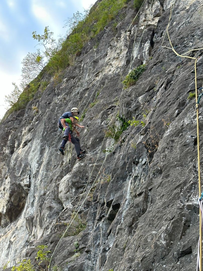 Am späten Nachmittag des 7. Oktober 2023 kletterten ein 60-jähriger Deutscher und sein 27 Jahre alter Sohn die Kletterroute "Kräuterführe" im Bereich Hängender Stein in Nüziders. Es handelt sich dabei um eine Route mit dem Schwierigkeitsgrad 4-. Der Sohn war bereits am Ende der Route angkommen und sicherte seinen Vater bei der letzten Seillänge nach. Kurz nachdem der 60-Jährige losgeklettert war, stürzte er ins Seil und brach sich dabei ein Bein.
