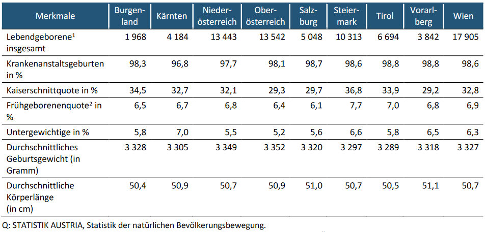 Regional gibt es durchaus signifikante Unterschiede: Am höchsten war der Anteil mit 36,8 Prozent in der Steiermark, vor dem Burgenland (34,5 Prozent). Vorarlberg hatte mit 29,2 Prozent die wenigsten Kaiserschnitte, gefolgt von Oberösterreich mit 29,3.