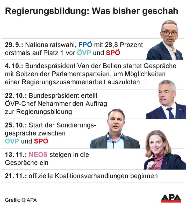 SPÖ-Chef Andreas Babler sprach vor Beginn der Sitzung der Steuerungsgruppe von einem "sehr entscheidenden Tag". "Wir hoffen, dass endlich was weiter geht", sagte er und sprach von ergebnisoffenen Gesprächen. "Es sind einige politische Fragen noch zu klären", meinte auch NEOS-Chefin Beate Meinl-Reisinger. ÖVP-Chef Karl Nehammer erwartete "intensive Verhandlungen".