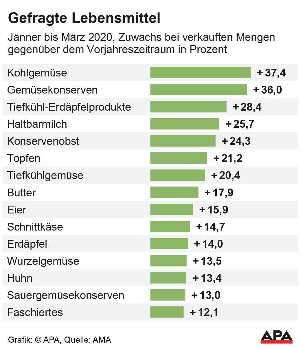 Der Absatzzuwachs an Lebensmitteln startete bereits mit Märzbeginn. "Mit dem ersten Gefühl der Unsicherheit füllten viele Haushalte ihre Grundvorräte auf", erklärte die AMA. Mit der Ankündigung der Ausgangsbeschränkungen Mitte März machten die Österreicher dann richtige Großeinkäufe.
