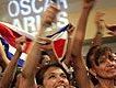 Ich kann noch nicht den Sieg beanspruchen, sagte Arias. Wir werden unsere Siegesfeiern einfach um 24 Stunden verschieben. Bei den gleichzeitig stattgefundenen Parlamentswahlen konnte seine Partei der Nationalen Befreiung (PLN) offenbar die meisten Sitze erobern, aber nicht die absolute Mehrheit.