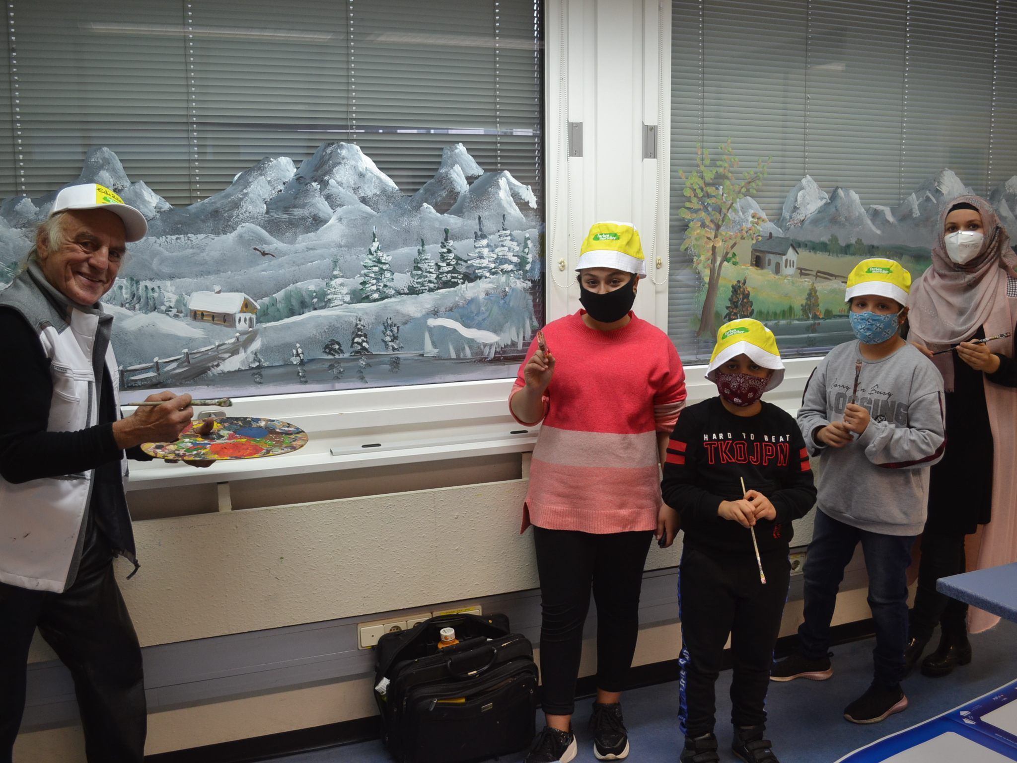 Dornbirn. Das zeigte sich einmal mehr bei einem zweitätigen Malworkshop im Lerncafé Dornbirn. Die Kids gestalteten gemeinsam mit dem Lustenauer Künstler „Edi 2000“ die Fensterfront zu einer winterlichen Landschaft und lernten allerlei Tricks, wie ein gutes Bild entsteht.