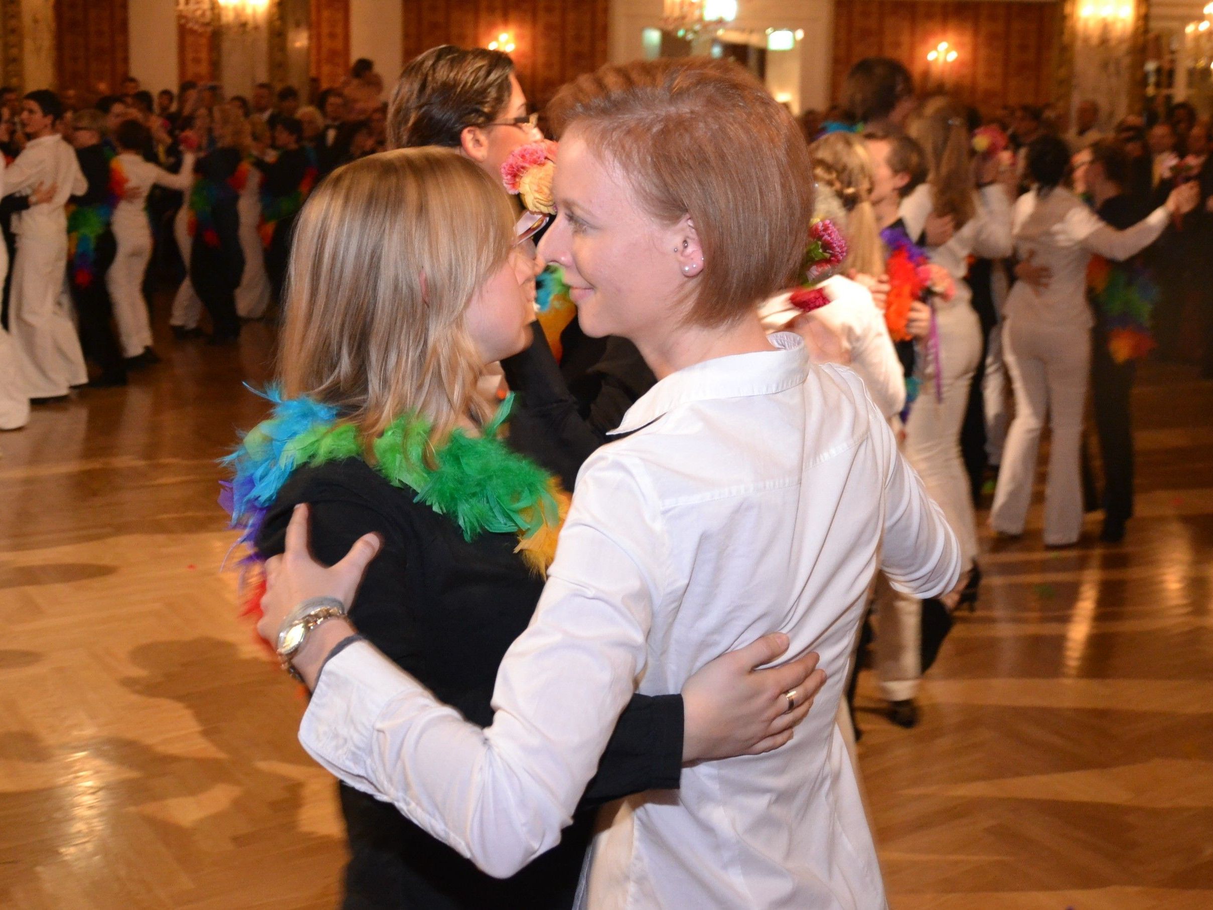 Ganz "hetero-friendly: Restlos ausverkauft war der Wiener Regenbogenball, der unter dem Motto "Die Liebe hat bunte Flügel" am 11. Februar zum bereits 15. Mal zum Tanz bat.