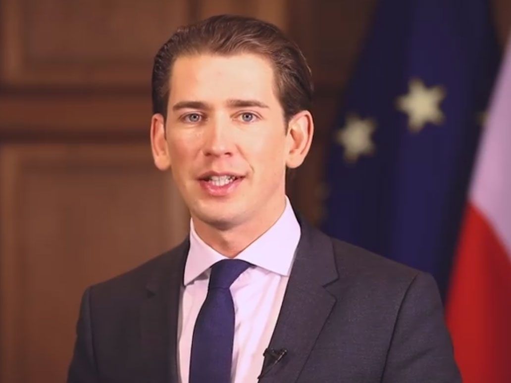 Sebastian Kurz hält eine Rede am Staatsfeiertag: Ganz im Stile eines Kanzlers oder Präsidenten wendet er sich an das Volk: “Liebe Österreicherinnen und Österreicher, ich möchte Ihnen allen einen schönen Nationalfeiertag wünschen und freue mich, gemeinsam mit Ihnen die Freiheit, aber auch die Neutralität unsers Landes feiern zu dürfen”. Im Hintergrund sind EU-Flagge und Österreich-Fahne zu sehen.