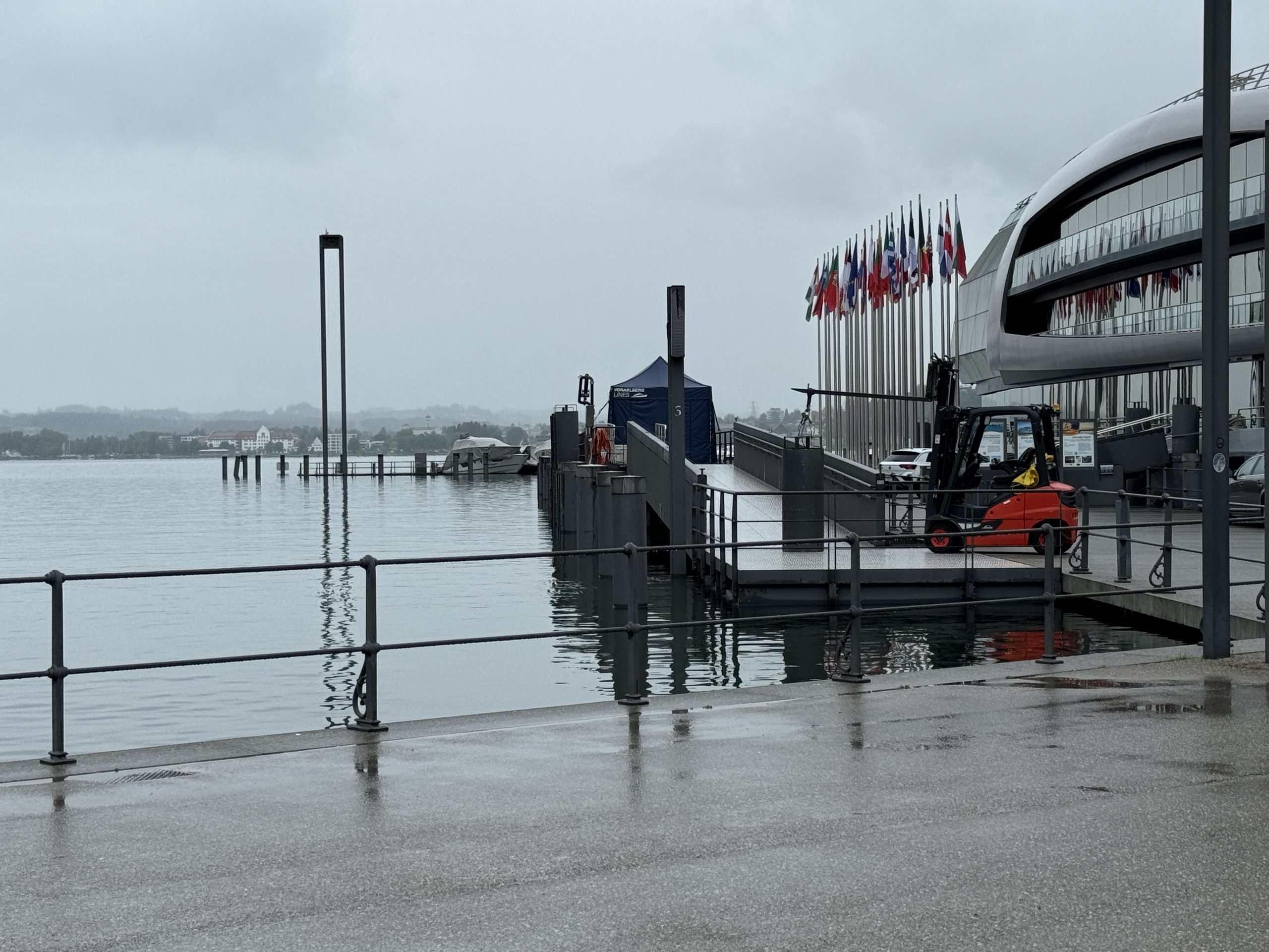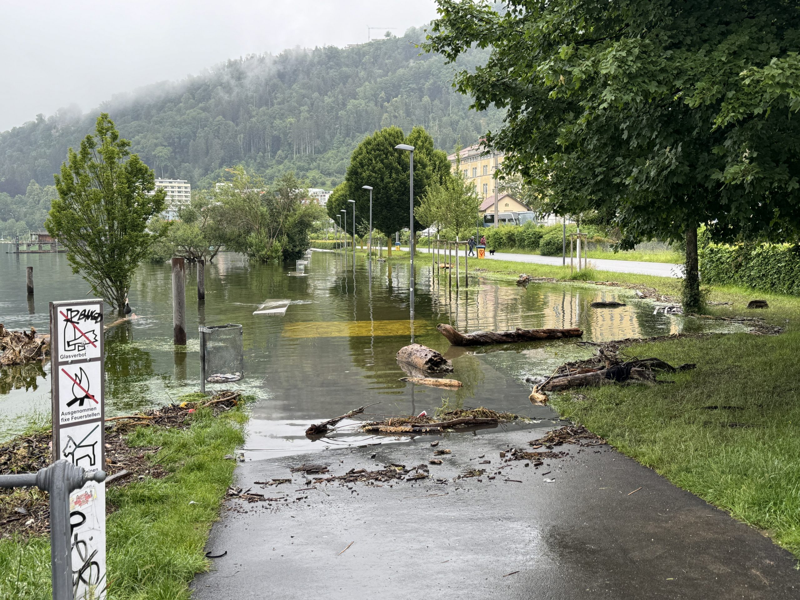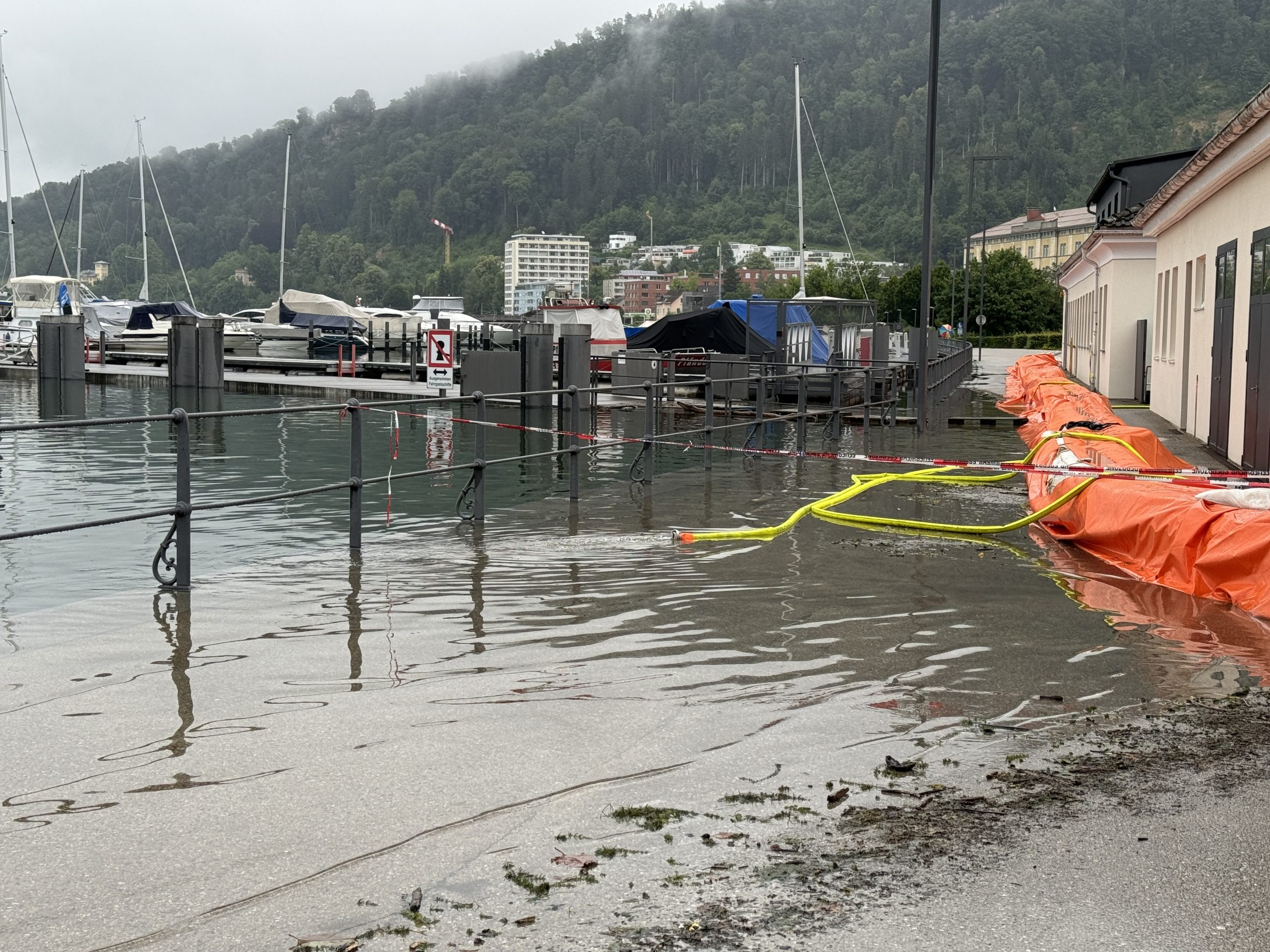 Der Pegel soll in den nächsten Stunden noch weiter ansteigen. Die umliegenden Gemeinden am See rüsten sich mit Hochwasser-Schutzeinrichtungen.