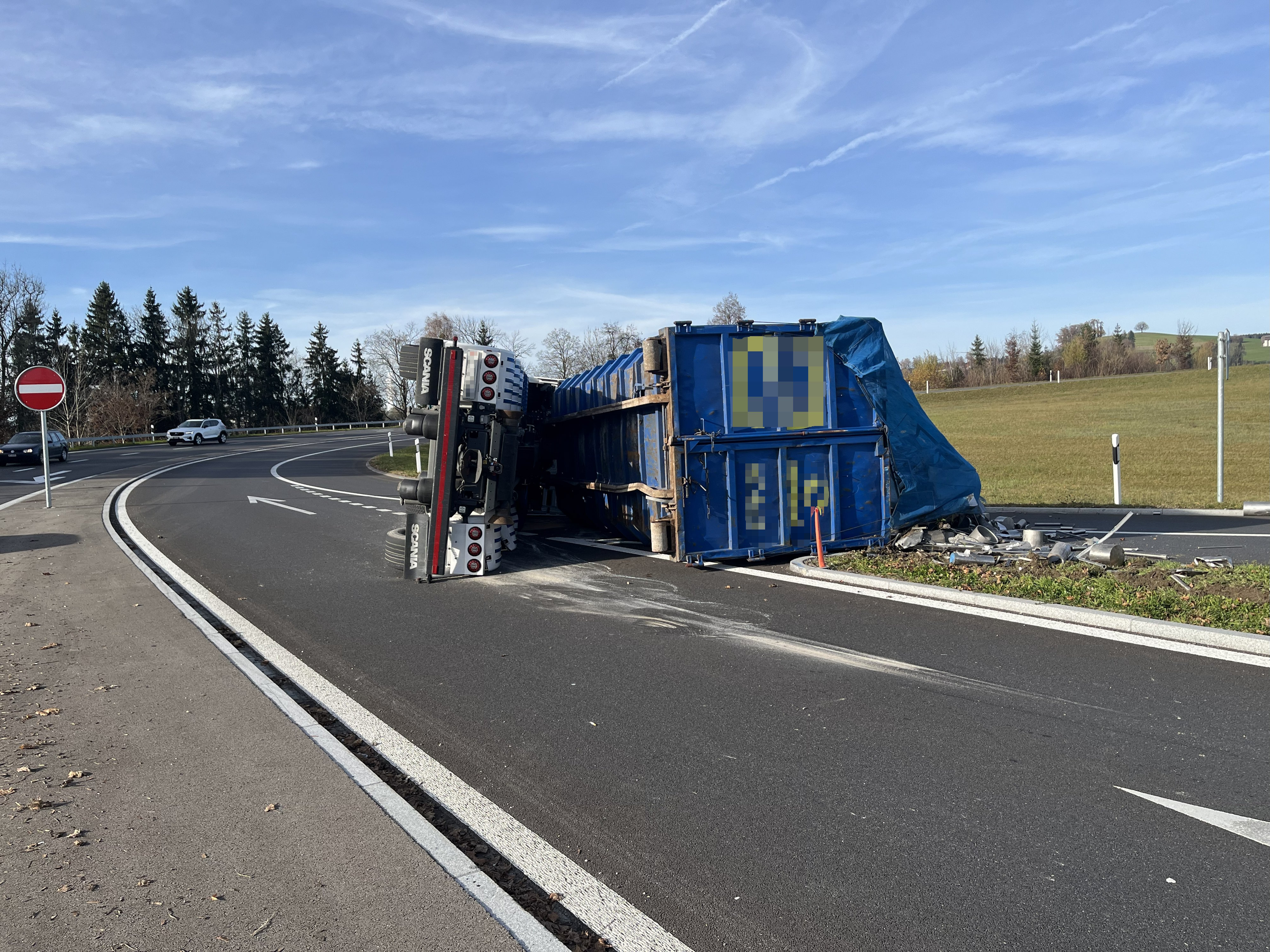 Am Donnerstag, den 13. November 2025, ereignete sich kurz nach 13:15 Uhr bei der Autobahneinfahrt Oberbüren in Richtung St.Gallen ein Verkehrsunfall. Ein 45-jähriger Lenker fuhr mit seinem Lastwagen die Autobahnauffahrt Oberbüren in Richtung St.Gallen. Dabei bemerkte er laut eigenen Angaben, wie die beladene Mulde wegen einer vergessenen Verriegelung vom Lastwagen zu kippen drohte.