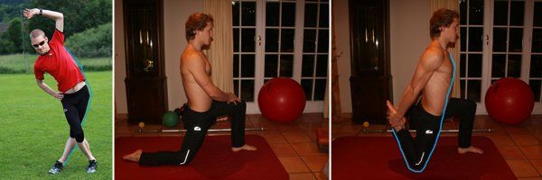 Nun kommen wir zu einem sehr kontroversen Thema. Soll man besser vor oder nach dem Training dehnen? Was wird überhaupt gedehnt? Ist Dehnen überhaupt gut? Wir möchten bei all diesen Fragen, zu denen es noch keine klare wissenschaftliche Meinung gibt, nun geschickt die Kurve kratzen, in dem wir den Fokus wieder zurück auf unser Ziel lenke: Volle Beweglichkeit in allen Strukturen, die unsere Schrittlänge vermindern können. Das Ziel ist es, einen gesunden Laufstil zu finden, mit einer Schrittlänge, die für unseren Körper optimal ist. Ein verspannter Hüftbeuger kann dabei die volle Schrittlänge genau so hemmen, wie es eine verkürzte Oberschenkelmuskulatur kann. Deshalb möchten wir nun Übungen zeigen, die Gelenke, Faszien, als auch die Muskulatur dehnen sollen, um volle Mobilität für die Laufbewegung zu erreichen. Wer die volle Mobilität in diesen Strukturen hat, kann sie mit sehr wenig Aufwand aufrecht erhalten. Andere müssen dabei mehr Zeit investieren und vielleicht in separaten Alternativtrainings 1-2x pro Woche zusätzlich an ihrer Beweglichkeit arbeiten.