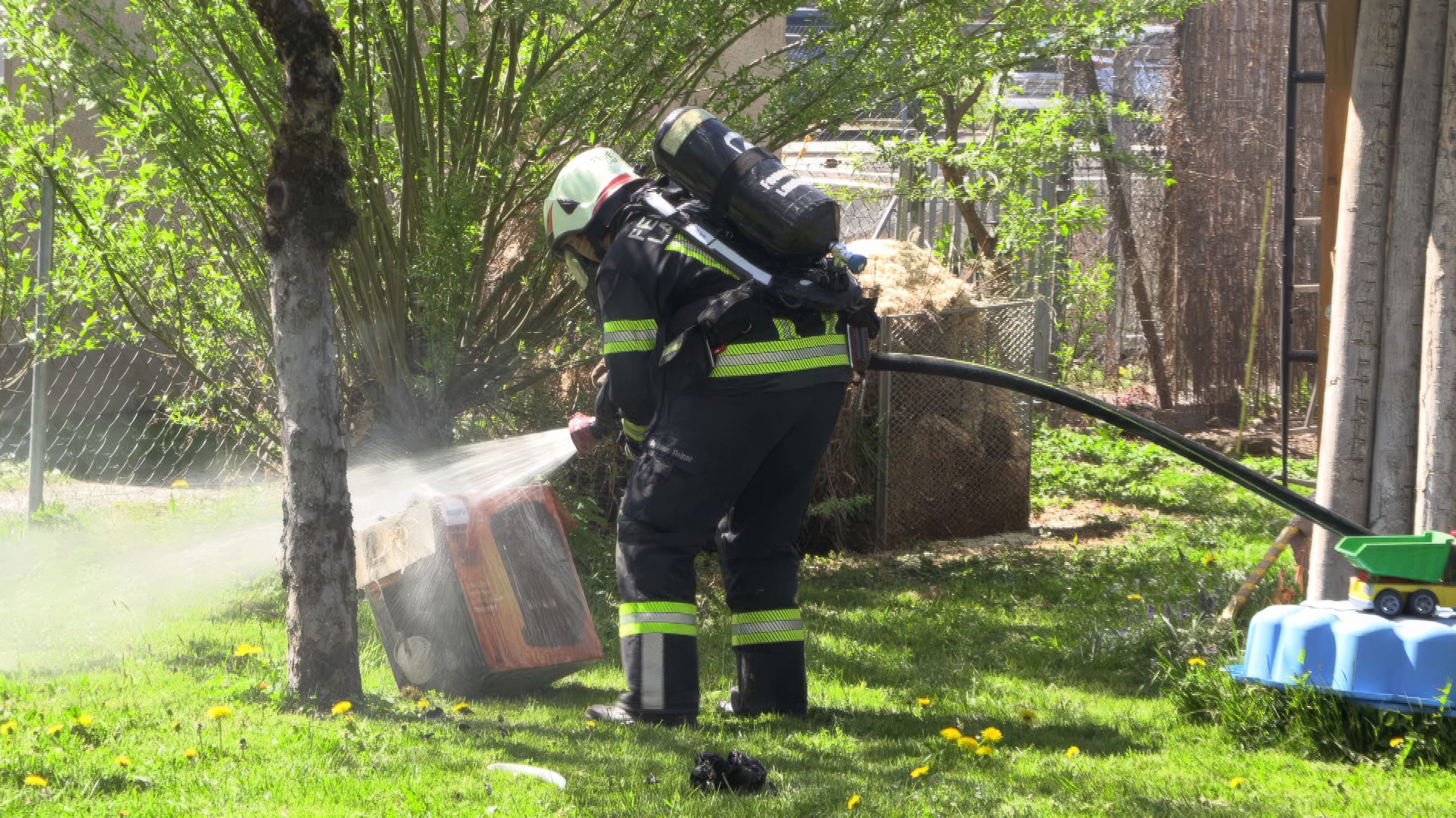 Am Freitag kam es gegen 13:30 Uhr im Bereich eines Holzschuppens im Garten eines Einfamilienhauses in Lauterach zu einer starken Rauchentwicklung. Eine aufmerksame Nachbarin bemerkte den Rauch und verständigte umgehend die Rettungs- und Feuerwehrleitstelle.