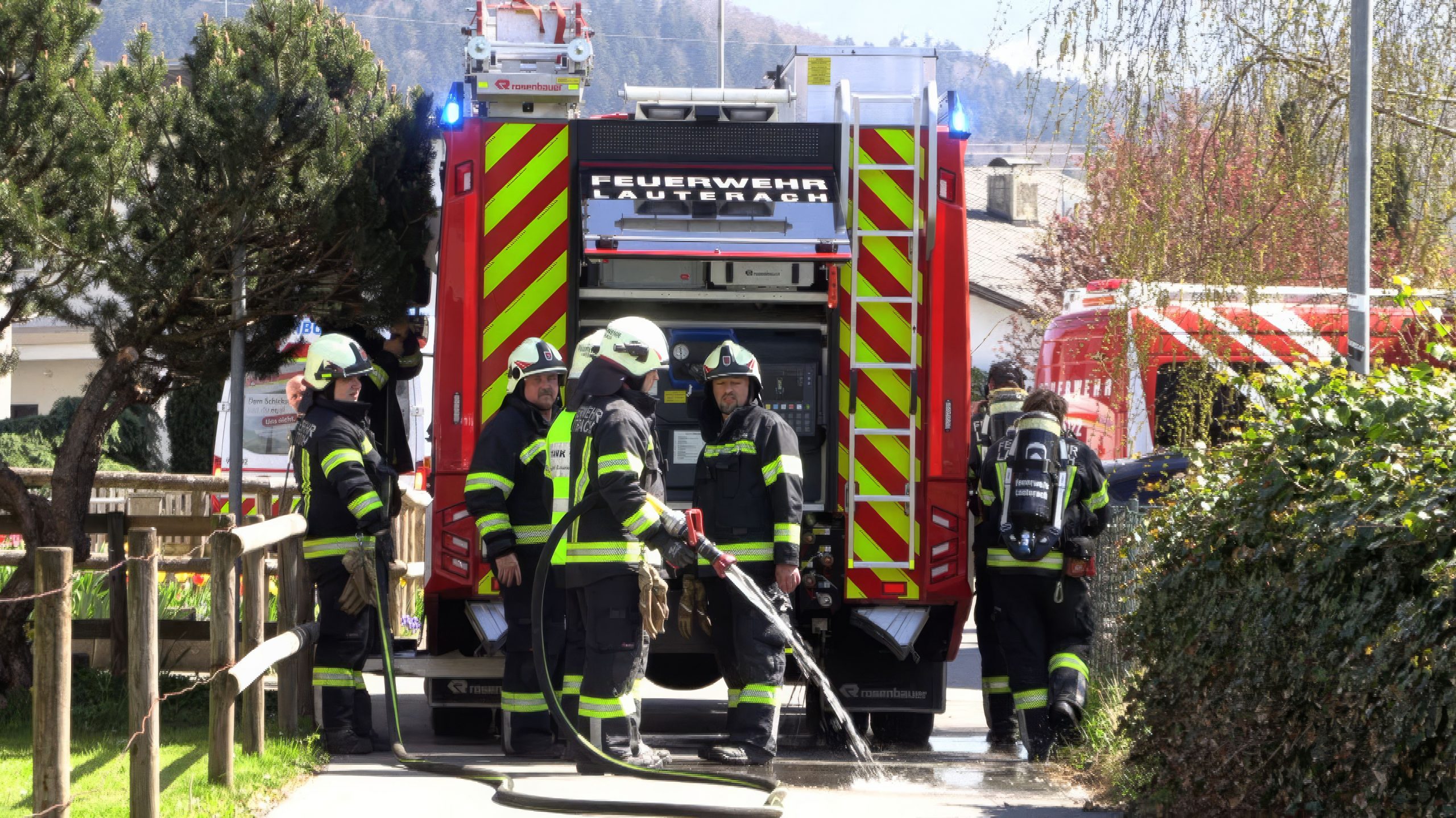 - Feuerwehr Lauterach mit 4 Fahrzeugen und 35 Einsatzkräften