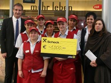 Die 14 Lehrlinge der OMV Tankstellen Bregenz, Wolfurt und Hard verzichteten in diesem Jahr zugunsten eines guten Zweckes auf ihre Weihnachtsgeschenke. Das gesparte Geld, die stolze Summe von 1.000 Euro, konnte Beate Mayer, die ihre kurzfristig erkrankte Chefin Karin Haag vertrat, Bürgermeister Dipl.-Ing. Markus Linhart und Alexandra Kargl, Abteilungsleitern Soziales und Gesundheit, übergeben. Das Geld kommt drei bedürftigen Bregenzer Familien zugute! Ein herzliches Dankeschön an die Lehrlinge!