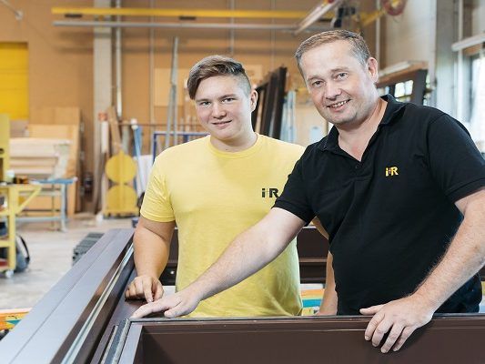 Harald Spettel und Robin Fricke vom Fensterbau freuen sich auf den 6. Oktober. Robin ist im dritten Lehrjahr. Das Arbeiten mit Holz hat ihn gereizt. Seine Entscheidung hat er nicht bereut: „Am besten war es, als ich erstmals alleine an die Maschine durfte. Da habe ich gespürt, dass man mir vertraut.“ Harald, sein Ausbildner, ist seit 12 Jahren im Unternehmen. Seine größte Befriedigung ist es, die Entwicklung seiner Schützlinge zu beobachten: „Sie kommen als schüchterne Burschen zu uns und sind am Schluss gestandene Handwerker.“ Und als solchen stehen ihnen in der i+R-Gruppe mit 1000 Mitarbeitern viele Karrierewege offen.