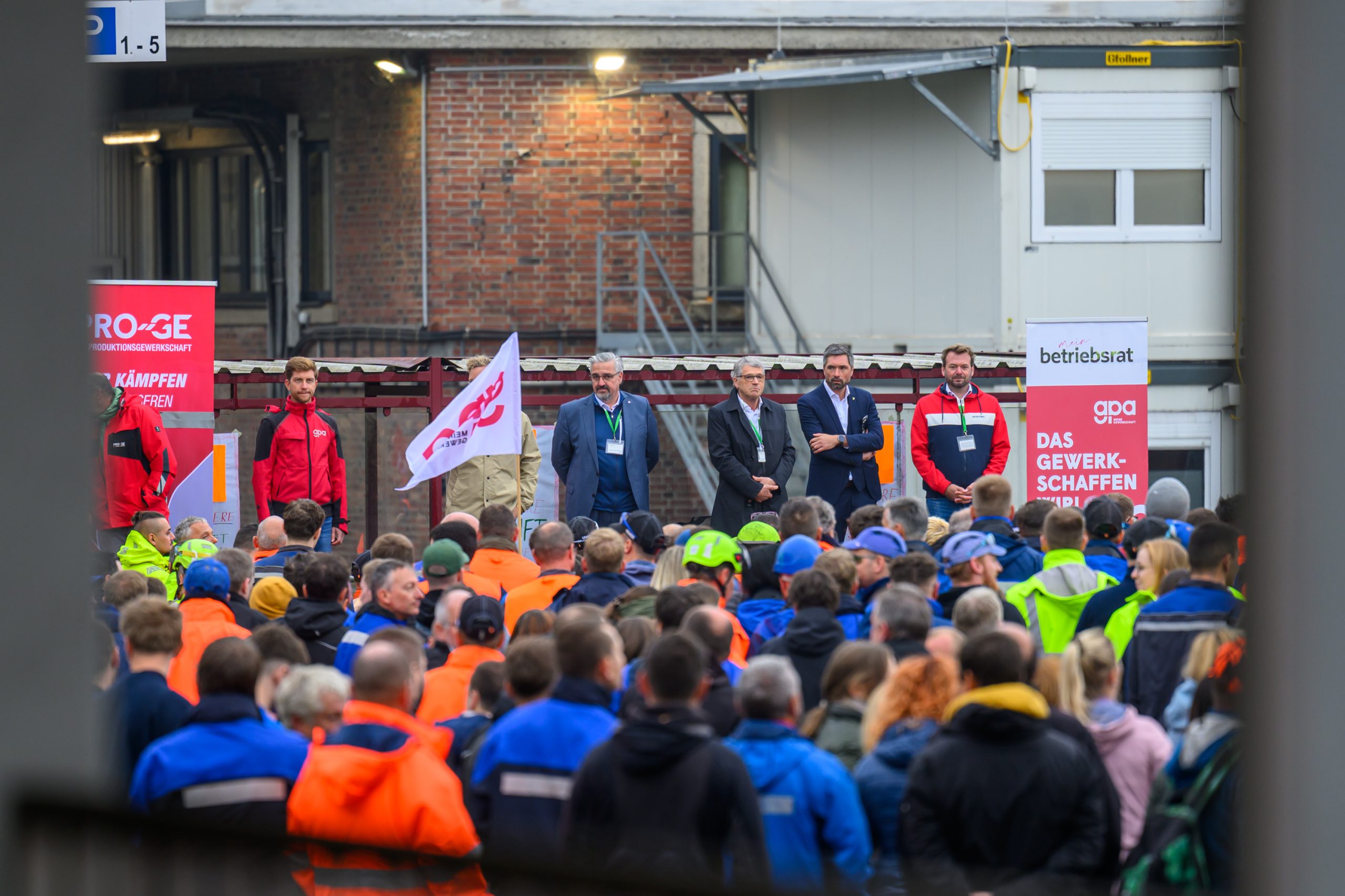 Die Belegschaftsvertretung hat zu einer Betriebsversammlung am Werksgelände aufgerufen, auch der Aufsichtsrat tagt am Vormittag. Ein Abbau von 500 Jobs steht im Raum.