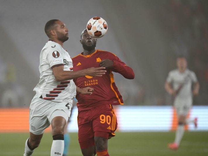 Bis zum ersten Hochkaräter dauerte es etwas mehr als 20 Minuten, Lukaku traf mit einem Kopfball die Oberkante der Latte. In weiterer Folge waren es dann aber die Gäste aus Leverkusen, die zu guten Chancen kamen. Zunächst vergab Frimpong aus kurzer Distanz, nach einem haarsträubenden Ballverlust der Italiener brachte Wirtz seine Mannschaft dann aber in Führung (28.). Frimpong und Wirtz fanden weitere Einschussmöglichkeiten vor, die jedoch nicht zum Erfolg führten. Bei den Römern versuchte sich Pellegrini mit einem Schuss, der sein Ziel allerdings auch verfehlte.