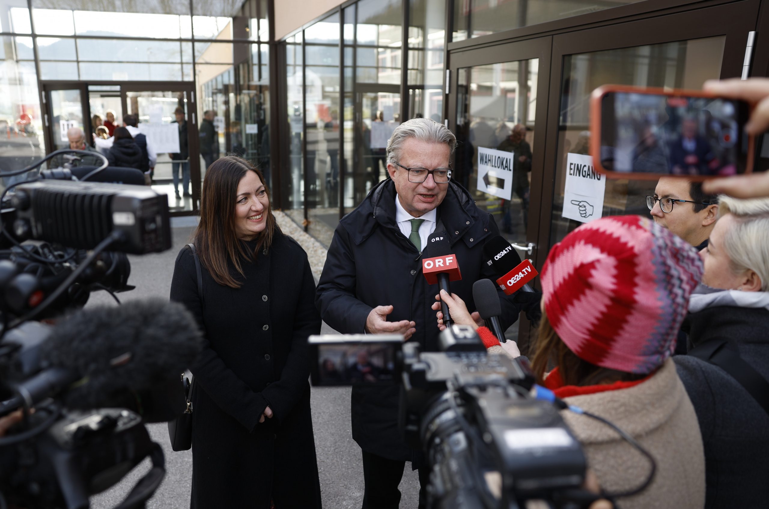 Nach der Grünen Spitzenkandidatin hat am Sonntag gegen 10.00 Uhr auch der amtierende Landeshauptmann Christopher Drexler (ÖVP) in Begleitung seiner Ehefrau Iris in seiner Wahlheimat Passail die Stimme für die Landtagswahl in der Steiermark abgegeben, nachdem er zuvor in der Kirche war und sich einen Kaffee im Gasthaus gegönnt hatte. Vor dem Weg zur Wahlurne zeigte er sich zuversichtlich und gut gelaunt.