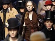 Weitere Highlights waren die Accessoires: Typisch britische Melonen, klassische Krawatten und Fliegen, besondere Schirme und Variationen der Kelly-Bag, als übergroße Kelly-Relax, als Mini-Version Kelly Pochette und als Teddy-Variante mit weichem Veloursleder und Lammfell.