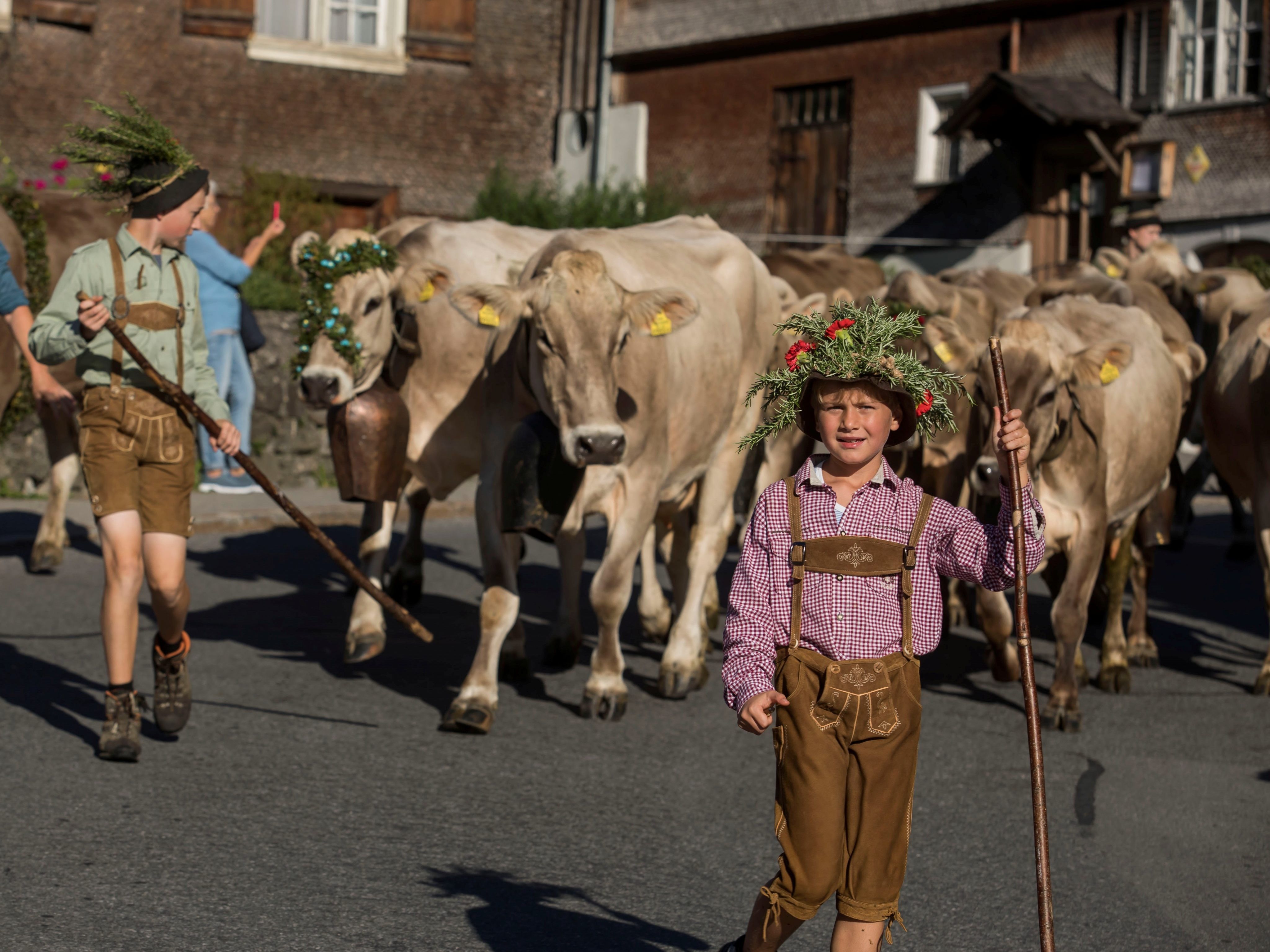 Heute ist es so weit: Zahlreiche Bregenzerwälder Alpen kehren mit rund 1000 Stück Vieh wieder zurück ins Tal. Von 9 bis 17 Uhr kommen die Alpen Oberlose, Klausberg, Obere, Mittelargen, Sack, Korb, Gräsalp und Schadona mit ca. 1.000 Stück Vieh ins Schwarzenberger Dorf. Der feierliche Alpabtrieb ist ein klares Highlight der bäuerlichen Kultur und zieht alljährlich Schaulustige aus ganz Vorarlberg an. Auch für das leibliche Wohl ist gesorgt, Gastronomie und Vereine sorgen am Dorfplatz für Bewirtung.