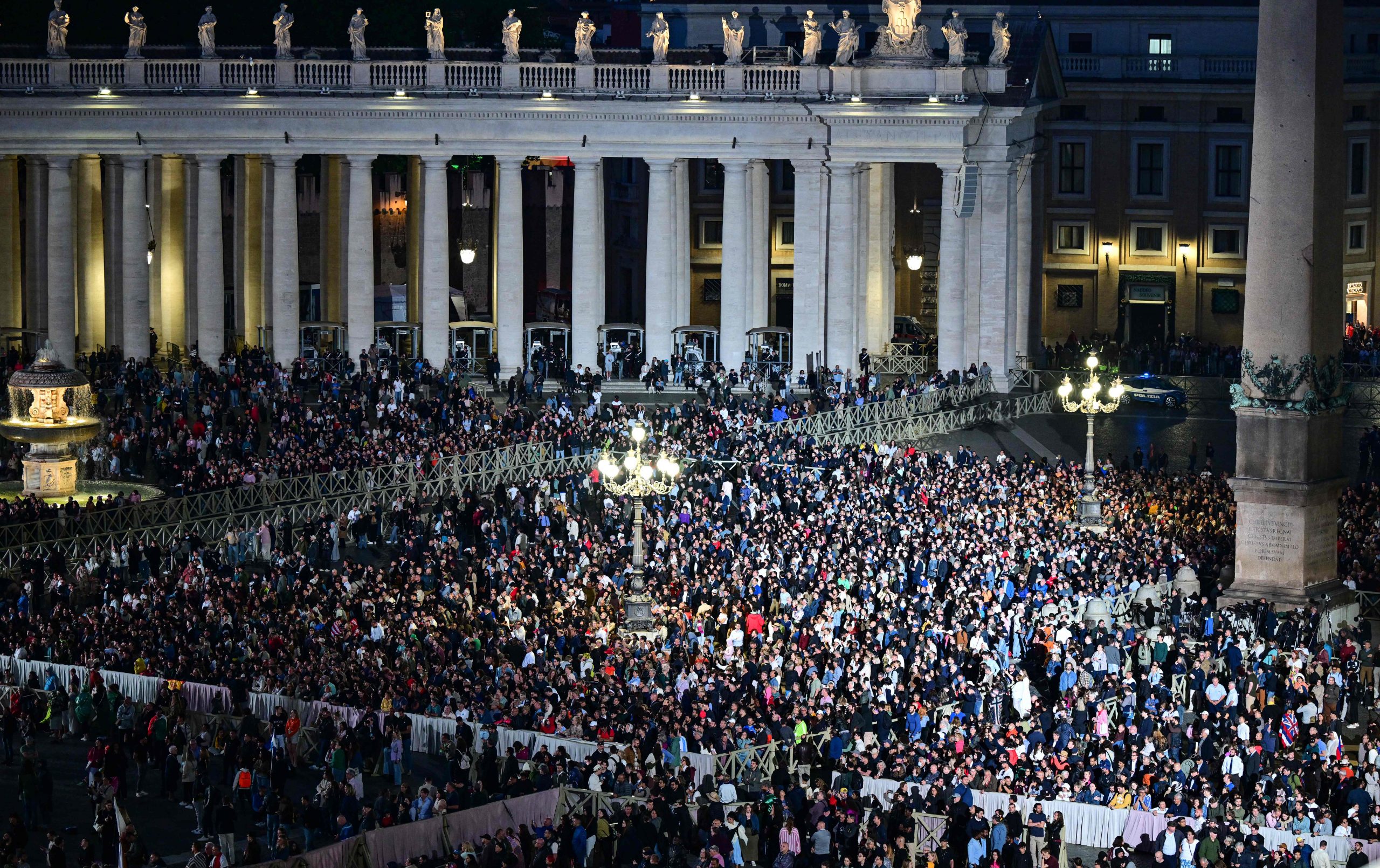 Viele Gläubige warteten am Mittwochabend betend, kniend oder sitzend auf den Pflastersteinen auf den Rauch. "Sogar die Möwen warten", scherzte ein amerikanischer Priester, während er den Vogel neben dem Schornstein betrachtete, der von den großen Bildschirmen auf dem Petersplatz aus gut zu sehen war und regungslos auf dem Dach der Sixtinischen Kapelle saß.