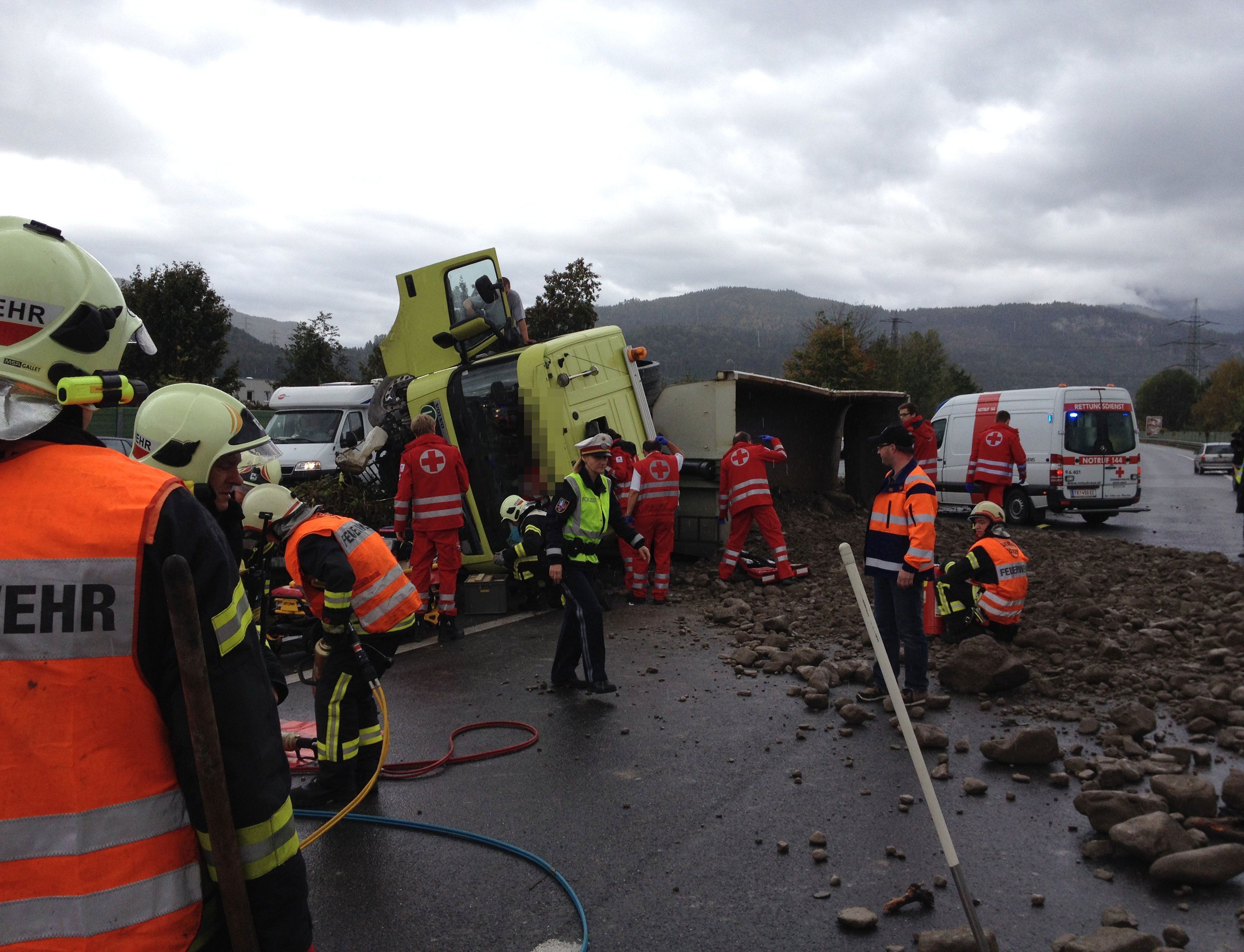 Der Lenker, ein 51-jähriger Mann aus Koblach, wurde im Fahrzeug eingeklemmt und musste von den Einsatzkräften geborgen werden. Mit Verletzungen unbestimmten Grades wurde er ins Landeskrankenhaus Feldkirch gebracht. Am Lkw entstand Totalschaden.