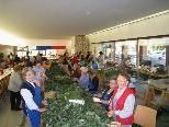 Von Montag bis Freitag waren täglich zahlreiche Frauen und Männer der Pfarrgemeinde fleißig an der Arbeit, um hier in gemütlicher Runde und vorweihnachtlicher Atmosphäre schöne Adventskränze zu binden oder stilvolle Gestecke zu kreieren. Gleich daneben wurden auf dem Weihnachtsmarkt die frisch gebundenen Adventkränze sowie allerlei weihnachtliche Dekorationen, Hand- und Bastelarbeiten sowie hausgemachte Kekse zum Verkauf angeboten.