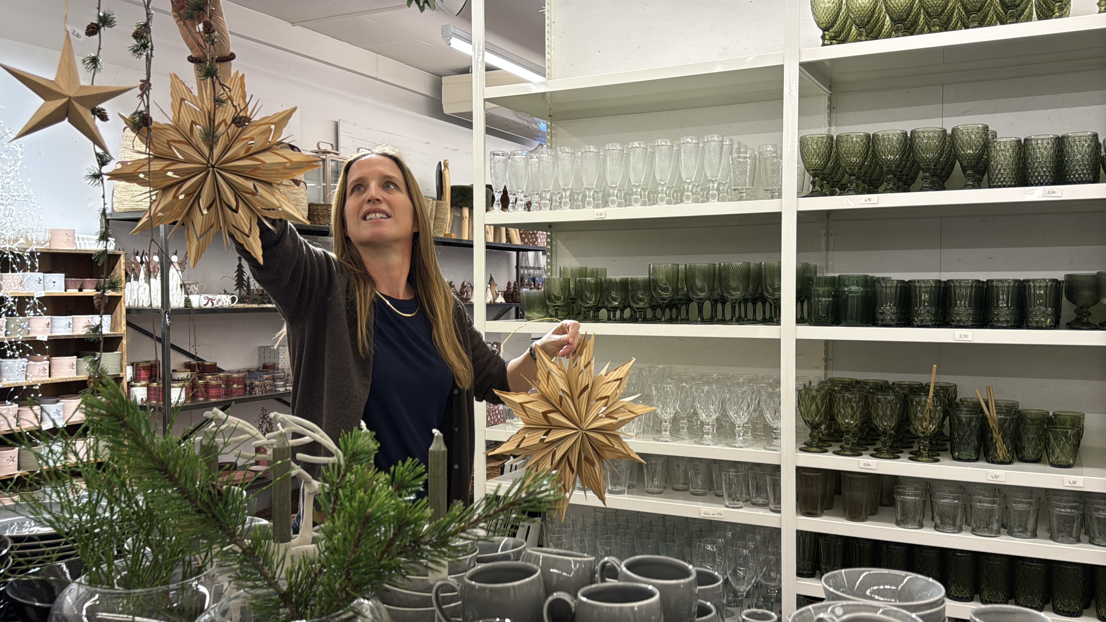 Edith Klinger freut sich, wenn noch vor Weihnachten ihre Dekoartikel möglichst viele Haushalte schmücken. Auch unter anderem aufgrund der Konkurrenz der Onlinehändler gibt es bei ihr im Geschäft den "Pink Friday" mit Rabatten. Die Preise werden nicht wie bei Onlinehändlern neu angeschrieben – das wäre bei den von Hand beschrifteten Produkten gar nicht für einen Tag möglich. Die Prozente werden dann an der Kasse abgezogen.