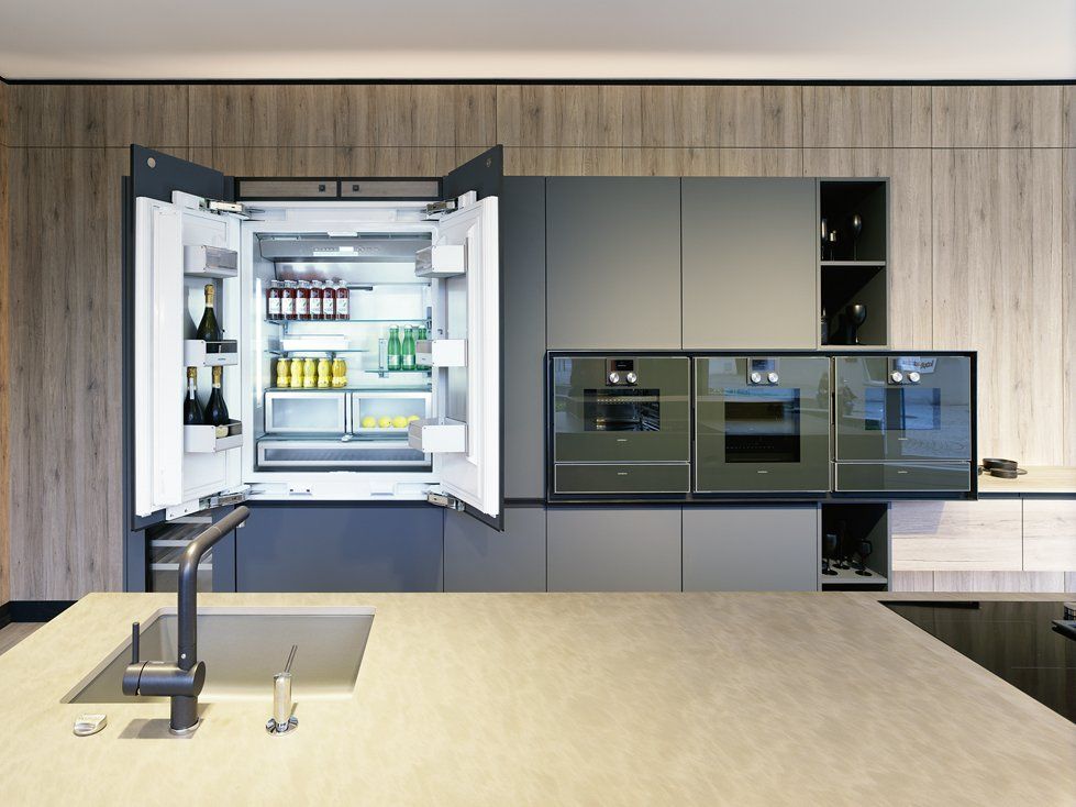 Die neue Show-Küche ist mit den neuesten Gaggenau Geräten ausgestattet, wie zum Beispiel einer doppelfügligen, 90cm breiten Kühl- Gefrier-Kombi mit Eiswürfelbereiter, einer Vakuumierlade für lange Lagerung und Sous-Vide Garen sowie einem selbstreinigenden Kombidampfgarer. Die störende Dunstabzugshaube ist jetzt im Induktionsfeld integriert und durch die „Anti-Fish“ Technik beseitigt diese auch die letzten störenden Gerüche die beim Anbraten entstehen.
