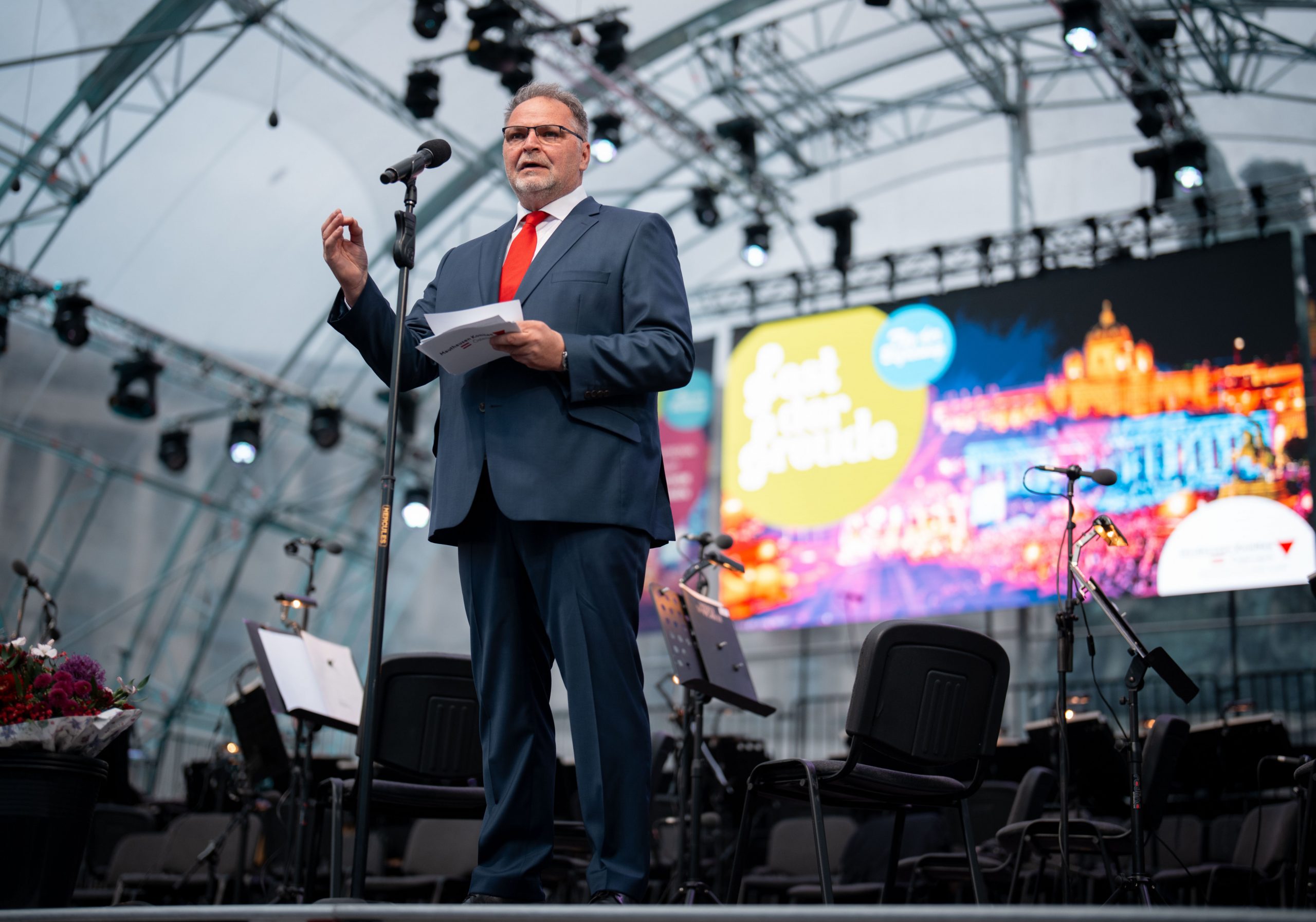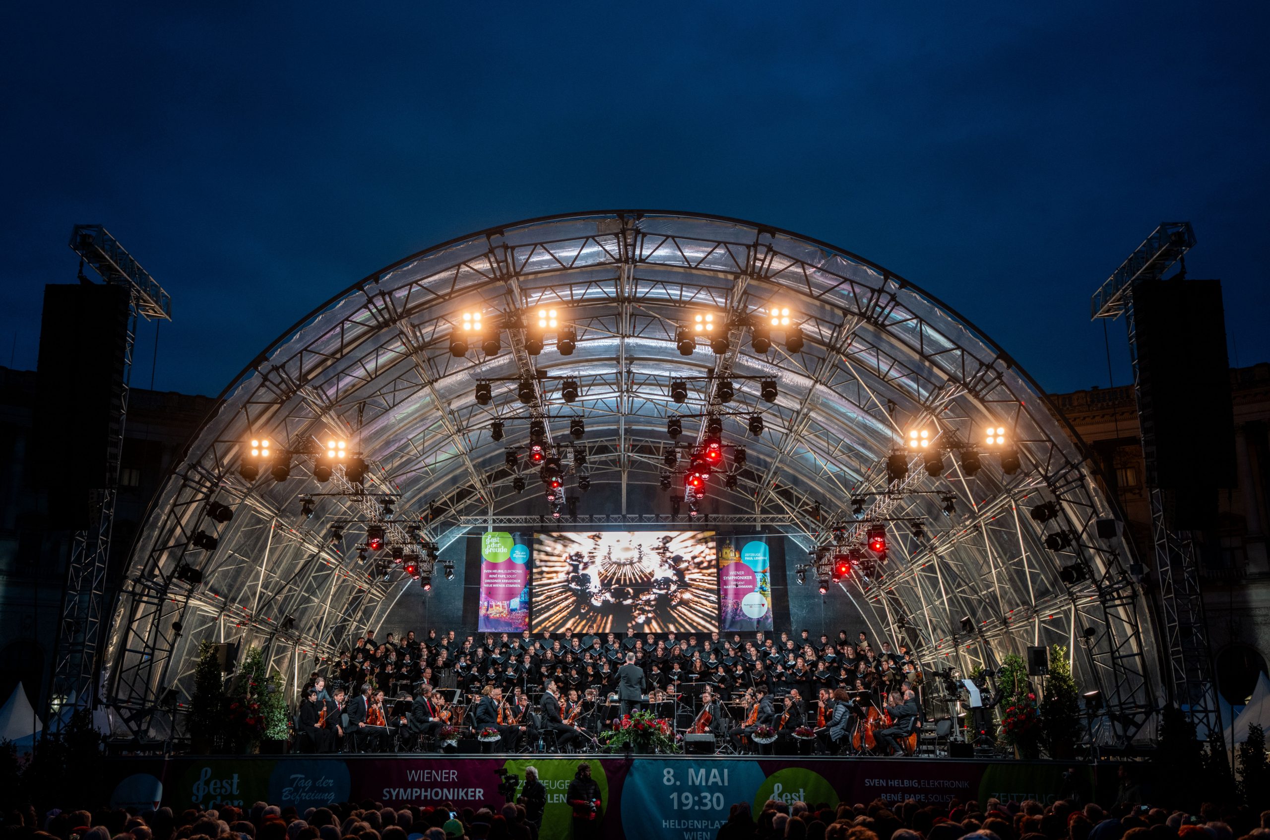 Nach dem Festakt im Bundeskanzleramt zu Mittag wurde am Donnerstagabend beim 13. "Fest der Freude" der Befreiung Österreichs vom Nationalsozialismus gedacht. Thema der vom Mauthausen Komitee Österreich (MKÖ) organisierten Gedenkveranstaltung war heuer "Für ein Niemals-wieder und Frieden in Europa". Bundespräsident Alexander Van der Bellen, der diesmal nicht persönlich teilnehmen konnte, warnte per Videobotschaft vor den Gefahren für liberale Demokratien und Pluralismus.