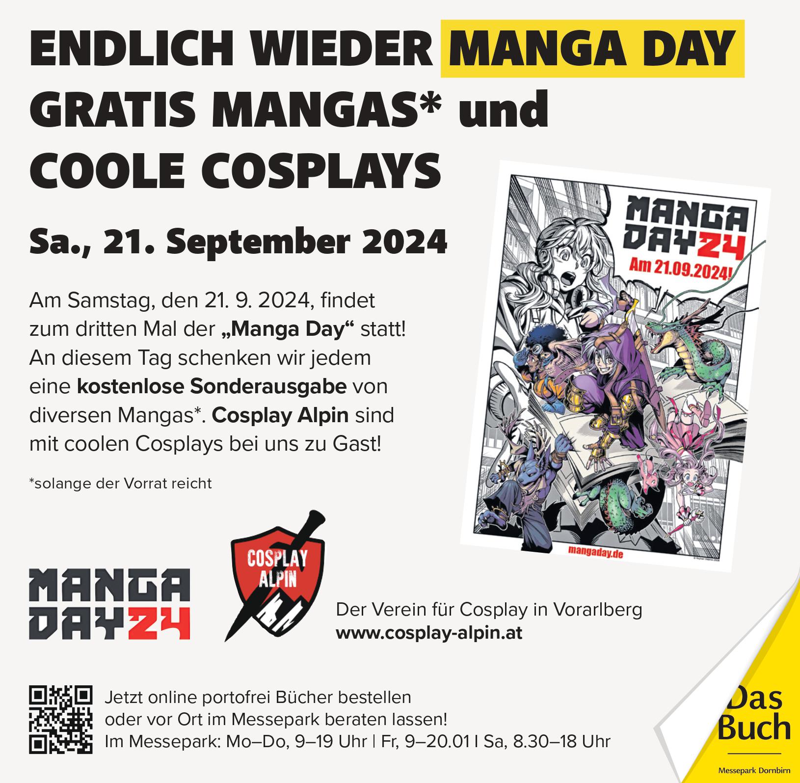 Der "Manga Day" geht am 21. September in die dritte Runde. Elf Labels und Verlage steuern heuer Sonderausgaben der japanischen Comicbücher. Auch Gratishefte gibt es in den teilnehmenden Geschäften zu ergattern. Mit dabei ist auch "Das Buch" im Messepark in Dornbirn.