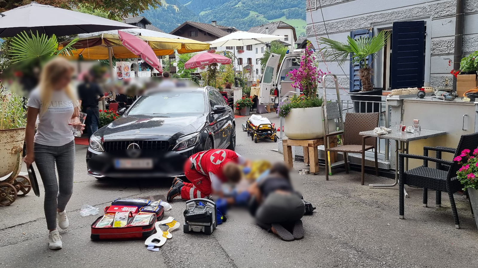 Der Gastronom setzte seinen Mercedes zurück und begutachtete den Verunfallten, übrigens ebenfalls ein Wirt aus der Montafoner Marktgemeinde. „Er hat nicht vor Schmerzen geschrien, sondern gleich nach Fotos verlangt. Die beiden Passanten, die Erste Hilfe leisteten, wurden gleich mitabgelichtet. Von einem Gast des Restaurants“, führt der Mercedes-Fahrer weiter aus.