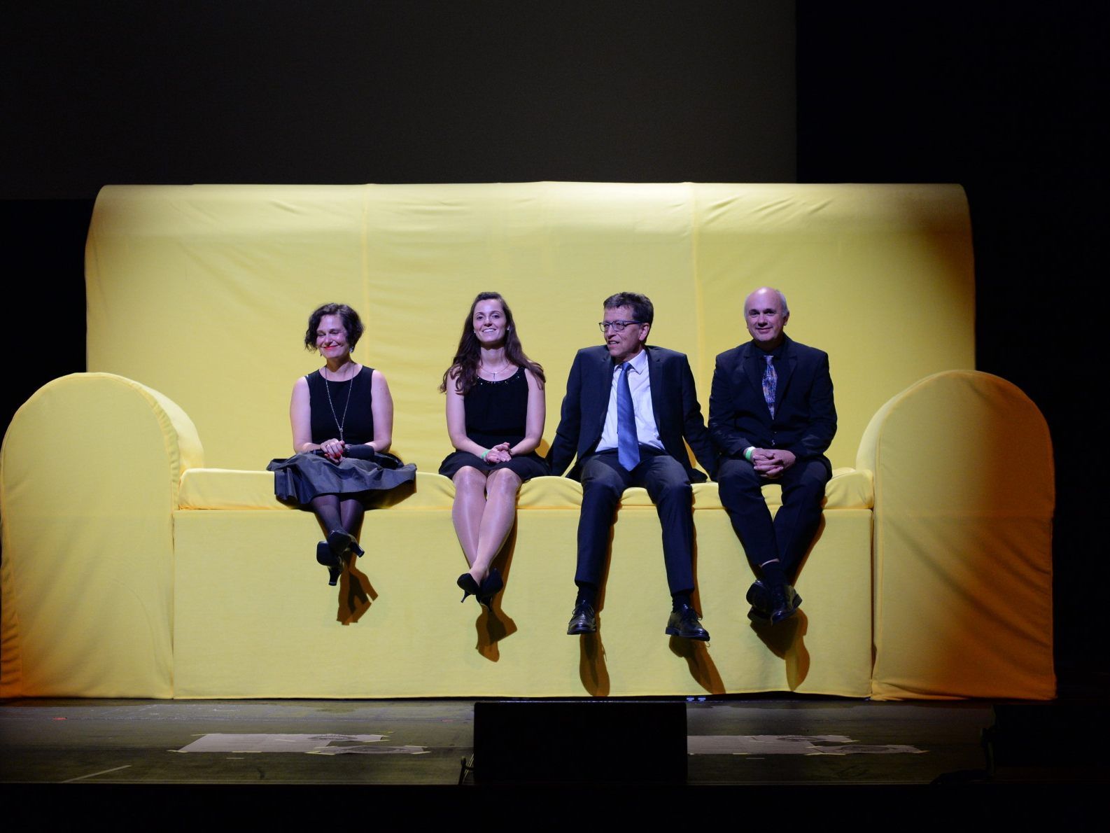 Die Showeinlagen erzählten von Holland, Frankreich, Spanien, Wien und dem „Käpplefest“, zeigten somit die Kultur-, Sozial- und Sprachschwerpunkte der Oberstufe und erklärten das Naheverhältnis des Maturajahrgangs 2019/20. Auf der überdimensionierten Couch saßen die KVs Prof. Gerold Amann, Prof. Thomas Grabher, Prof. Daniela Hemetsberger und Prof. Gabi Seeger und ließen die Höhepunkte ihres Wirkens Revue passieren.