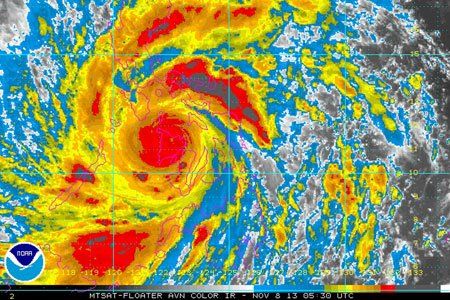 “Haiyan”, der als einer der gefährlichsten Wirbelstürme seit Jahrzehnten gilt, erreichte am Freitagmorgen die philippinische Ostküste.