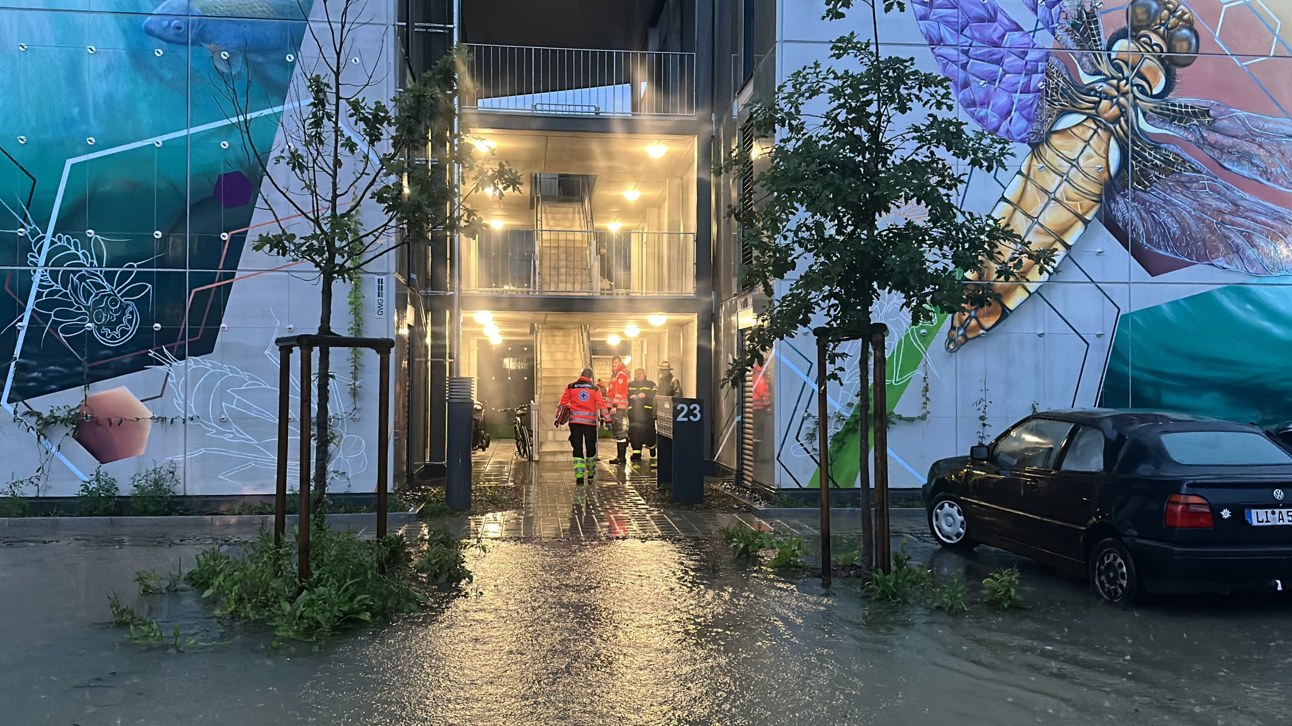 Weil Wasser eingedrungen war, habe die Möglichkeit eines Kurzschlusses bestanden, sagte eine Sprecherin der Stadt am Freitagabend. Die Bewohner des Hauses wurden demnach mit einem Bus zu einer Turnhalle gebracht, in der sie die Nacht verbringen konnten.