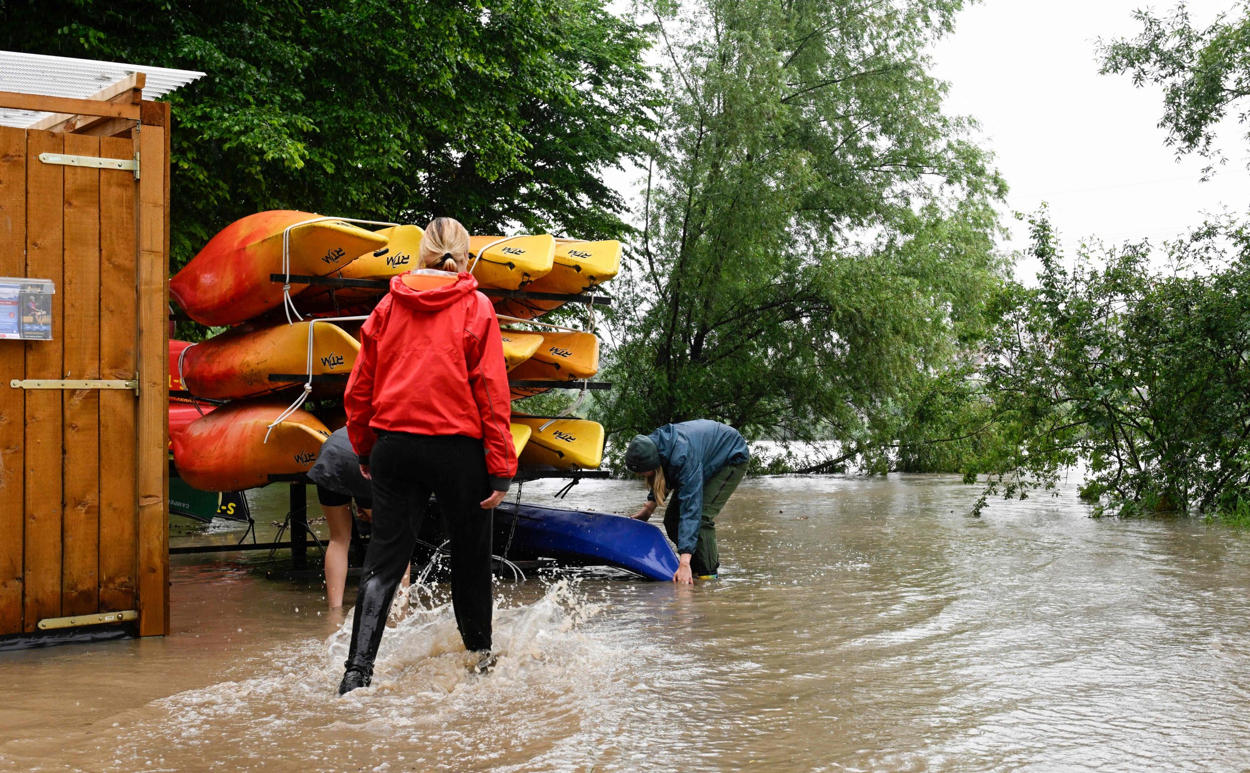 Überflutungen in Süddeutschland - Menschen mit Booten gerettet