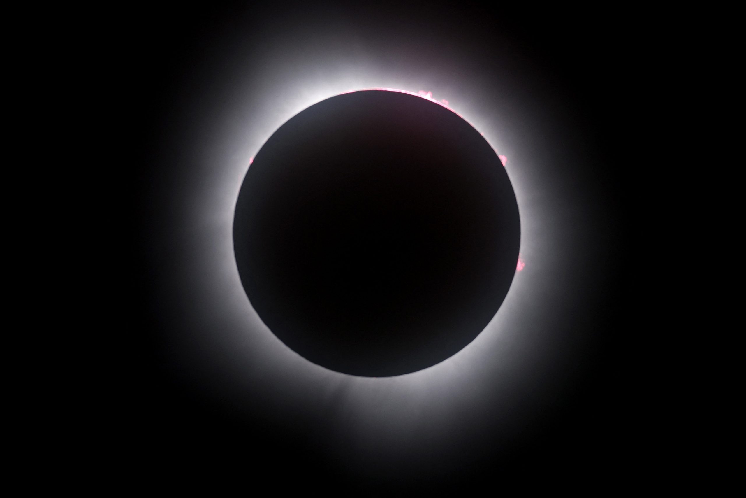 Ein solches Himmelsspektakel kommt vor, wenn der Mond zwischen der Sonne und der Erde durchzieht und dabei die Sonne komplett verdeckt. Beginnend über dem Pazifik zog sich der Kernschatten über den Norden Mexikos, überquerte die USA von Texas Richtung Nordosten bis nach Maine, streifte den Südosten Kanadas und endete über dem Nordatlantik.