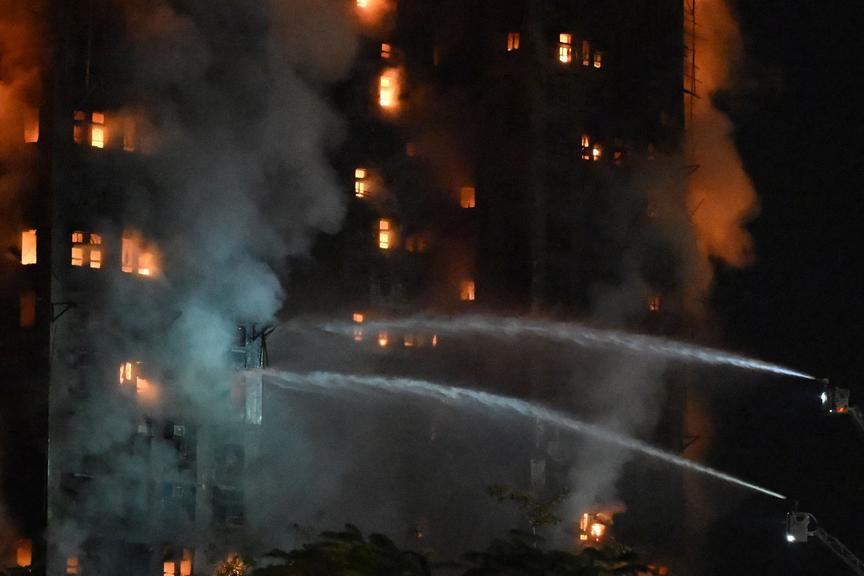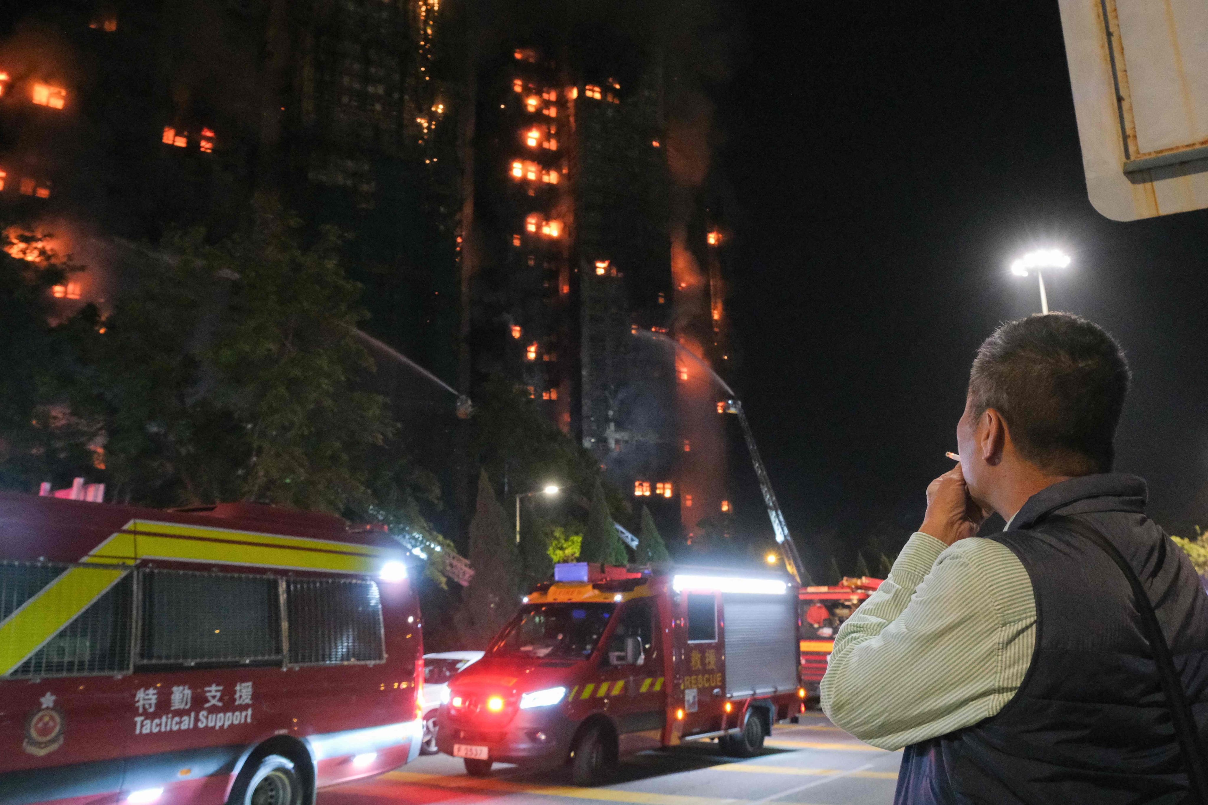 Berichten unter Berufung auf die Feuerwehr zufolge hatten die Flammen sieben Wohnblöcke der Anlage erfasst. Am Nachmittag gingen demnach mehrere Anrufe von Menschen ein, die in ihren Wohnungen festsaßen. Insgesamt umfasst das Gebiet acht Wohnhäuser mit je 32 Stockwerken und insgesamt knapp 2.000 Wohnungen. Die Gebäude waren demnach alle für Renovierungsarbeiten mit einem Baugerüst aus Bambus eingefasst.