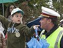 Manchmal wollen die kleinen Ärmchen einfach noch nicht so, wie sie sollten. Ist auch noch ein Regenschirm im Spiel, wird es überhaupt schwierig mit dem Aufpassen im Straßenverkehr. Aber macht nichts. Silvio Tschernitz hilft mit Engelsgeduld weiter. Seit mehr als zwanzig Jahren ist der Beamte vom Polizeiposten Wolfurt in der Verkehrserziehung tätig. Ein anstrengender, aber dankbarer Job, resümiert er für sich. Denn die positiven Auswirkungen sind belegbar. Schulwegunfälle mit toten oder schwerverletzten Kindern gehören seit längerem der Vergangenheit an.
