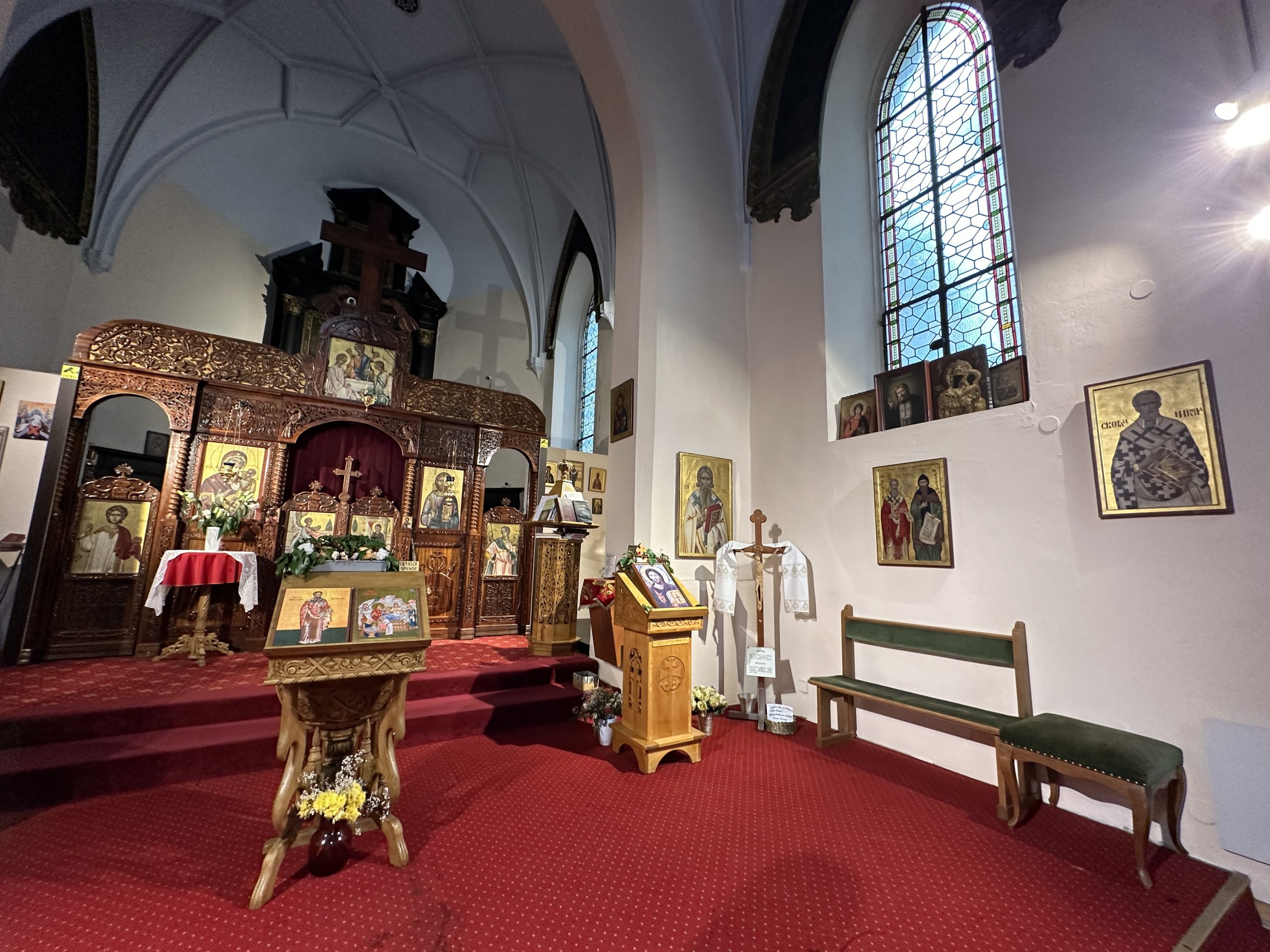 Ein Blick in die Kirche. Eine große Rolle spielen hier die Ikonen (Kult- und Heiligenbildern). ©VOL.AT/Mayer
