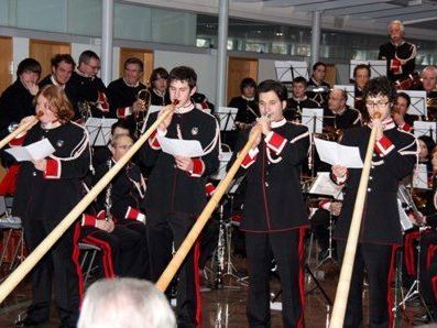 Heuer wurde das Silvesterkonzert zu einem Benefiz-Konzert für die durch die Reaktorkatastrophe in Tschernobyl schwer geschädigten Kinder. Der Gesamtbetrag an freiwilligen Spenden aus diesem Konzert wird dann von der Gemeinde Hard verdoppelt. Der Betrag wird der Harderin Doris Allgäuer für ihr Sozialprojekt in Gomel übergeben. Sie arbeitet seit über 16 Jahren mit großem sozialem Engagement für diese leidgeprüften Kinder. Damit ein beträchtlicher Betrag zusammen kam, boten die Musikanten auch einige Gusto-Stückchen. So eröffnete die neu gegründete Alphorngruppe das Konzert. Josef Weger feierte seinen 80. Geburtstag. Er ist der zweitälteste aktive Musikant Vorarlbergs. Es war sein Wunsch, als Krönung seines Geburtstages, zusammen mit dem früheren Obmann Thomas Uecker ein Klarinettensolo mit Orchesterbegleitung zu spielen. Der überwältigende Applaus belohnte ihn für seine musikalischen Künste. Auch seiner Frau Ursula wurde mit einem Blumenstrauß gedankt. Zu guter letzt übernahm Bürgermeister Hugo Rogginer von Kapellmeister Reinhard Schäfer das Kommando über die Musikanten und dirigierte den Radetzky-Marsch.