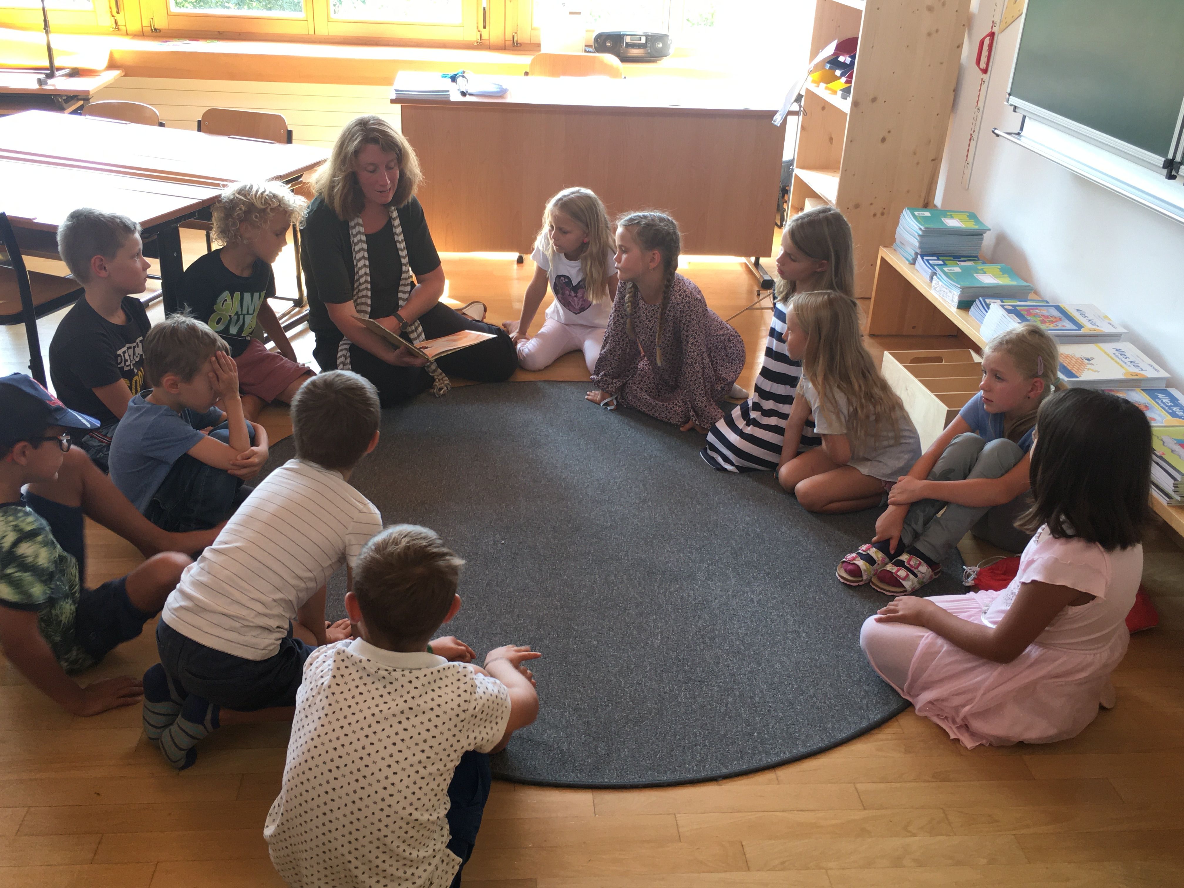 Aufgrund des guten Wetters und um den Abstand einzuhalten, fand der alljährliche Gottesdienst zum Schulbeginn im Freien statt in der Kirche statt. Anschließend wurden die Schüler auf dem Schulvorplatz begrüßt, wo die Schulleiterin auch über die geltenden Bestimmungen im Umgang mit Corona informierte. Für die 34 Erstklässler gab es je eine Sonnenblume als Willkommensgeschenk. Danach ging es geordnet ab in die Klassen. "Machen wir es wie die Sonnenblume: Wenden wir unser Gesicht der sonne zu", meint Schulleiterin Carmen Willi dazu.
