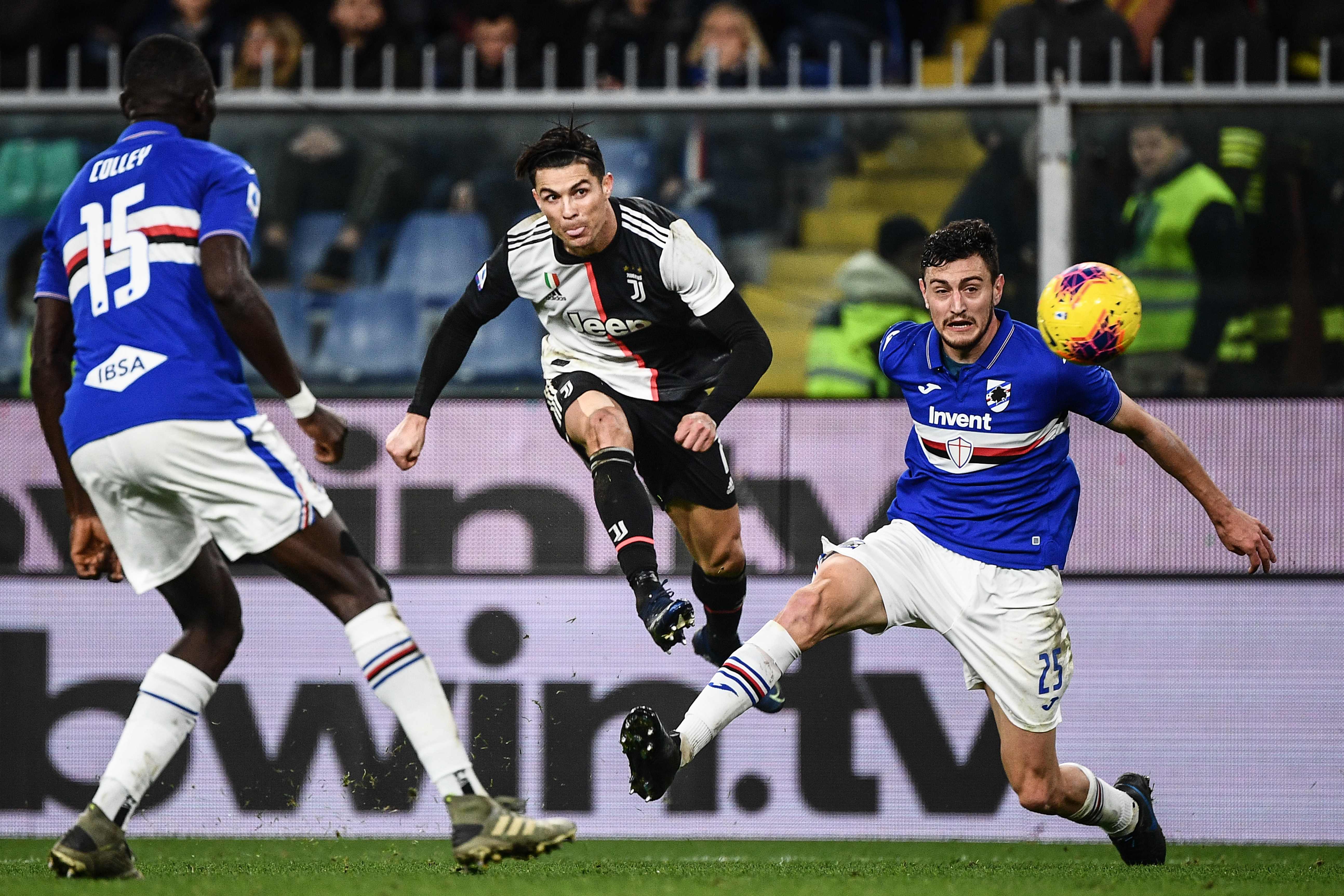 Wie Michael "Air" Jordan: Der portugiesische Weltstar schraubte sich bei seinem 2:1-Siegtreffer (45.) per Kopf für Juventus Turin bei Sampdoria Genua unglaubliche 2,56 m in den Abendhimmel - und ließ sogar den Gegner von seiner außergewöhnlichen Fußballkunst schwärmen.