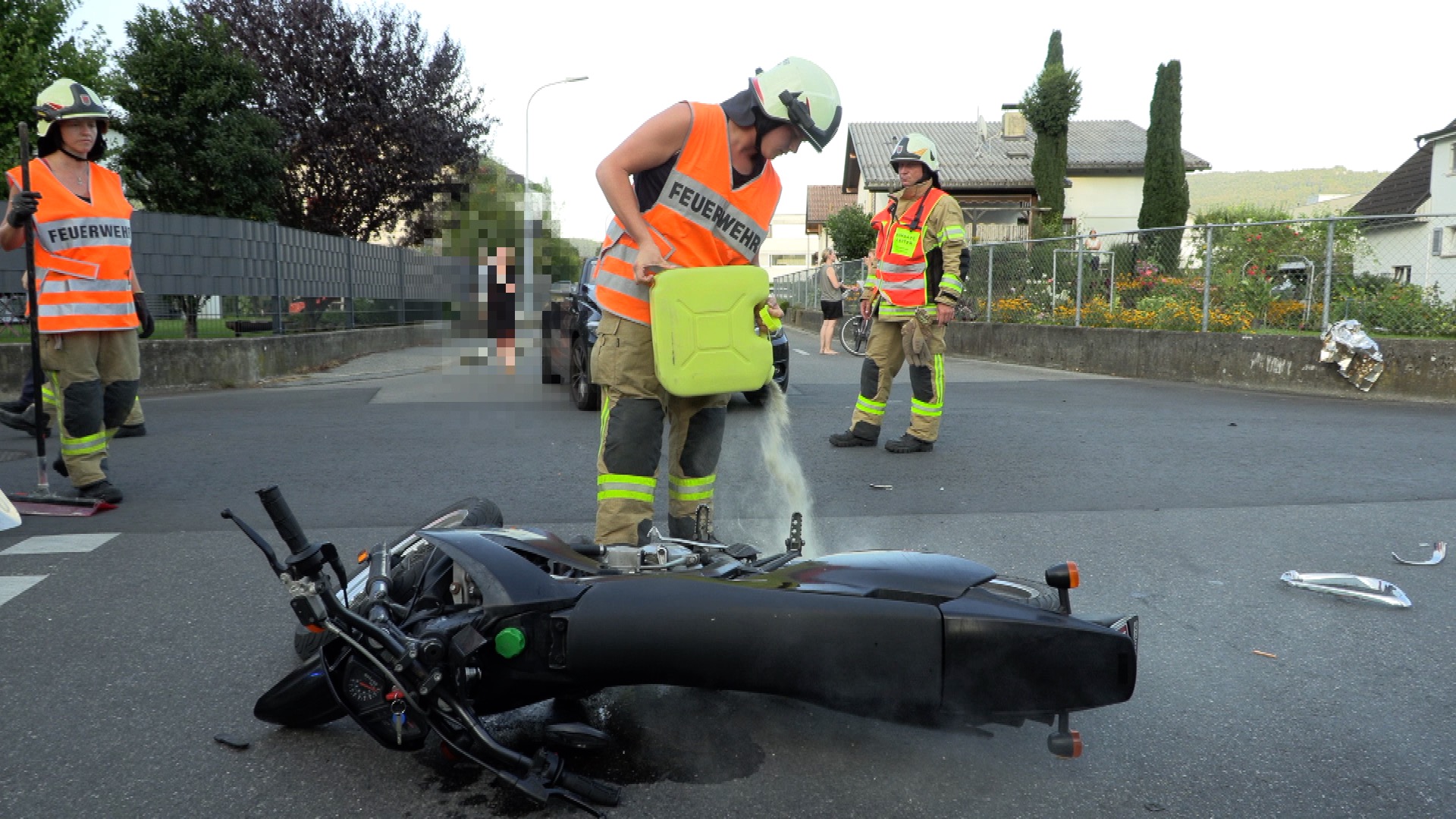 Die Feuerwehr musste am Unfallort auslaufende Betriebsstoffe des Mopeds binden und im Anschluss die Unfallstelle räumen.