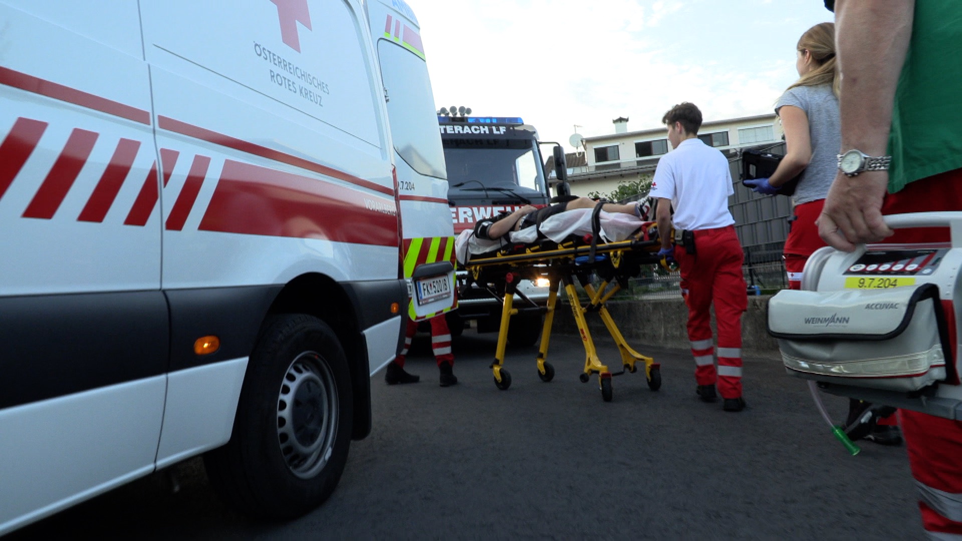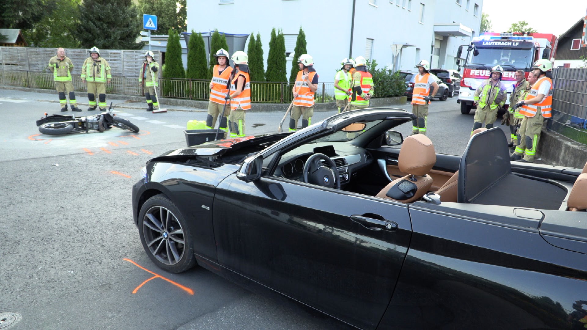 Aus ungeklärter Ursache kollidierte am Sonntagabend kurz nach 19 Uhr an der Kreuzung Hoheneggerstraße und Antoniusstraße in Lauterach ein Mopedlenker mit einem Pkw.