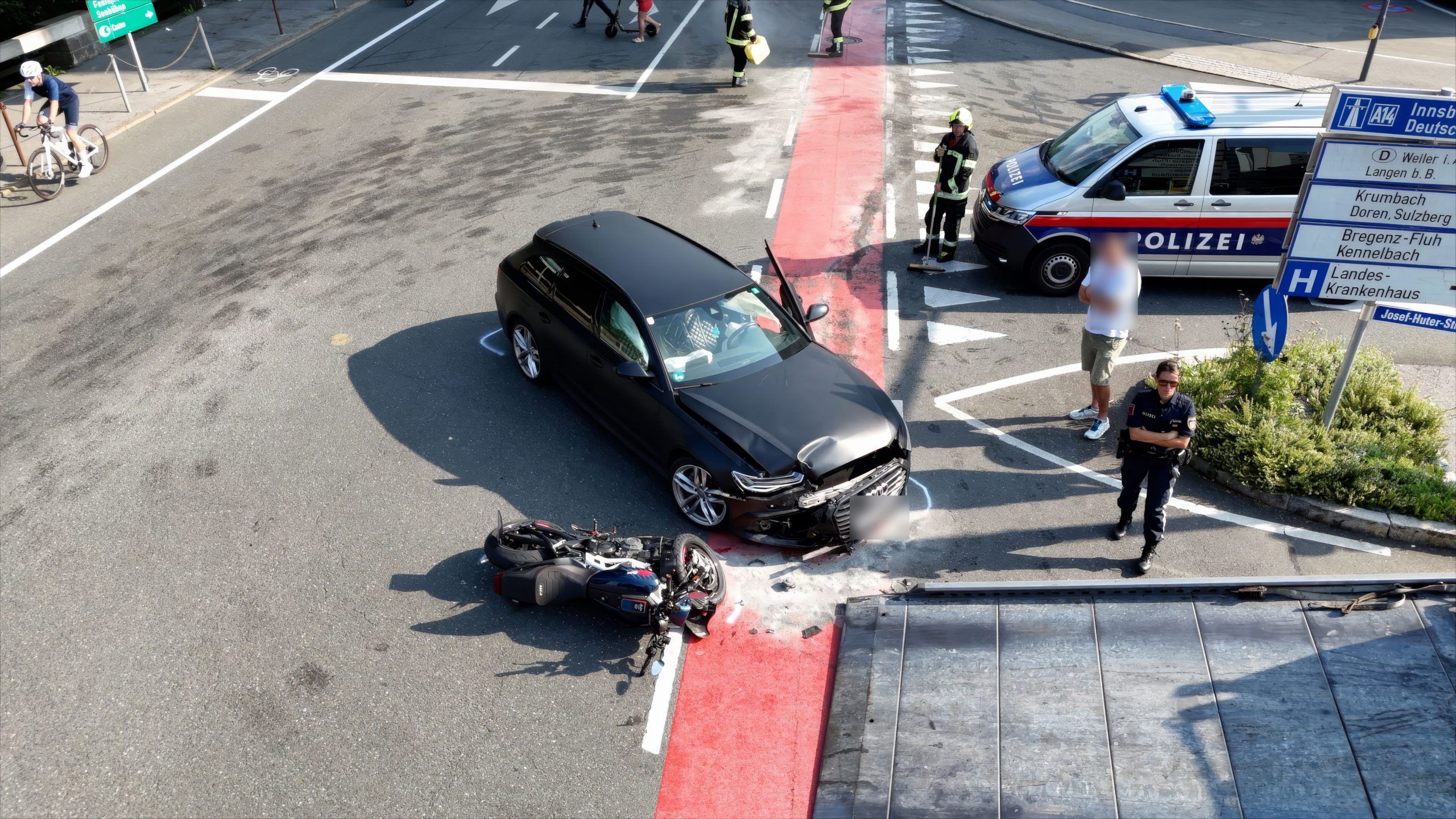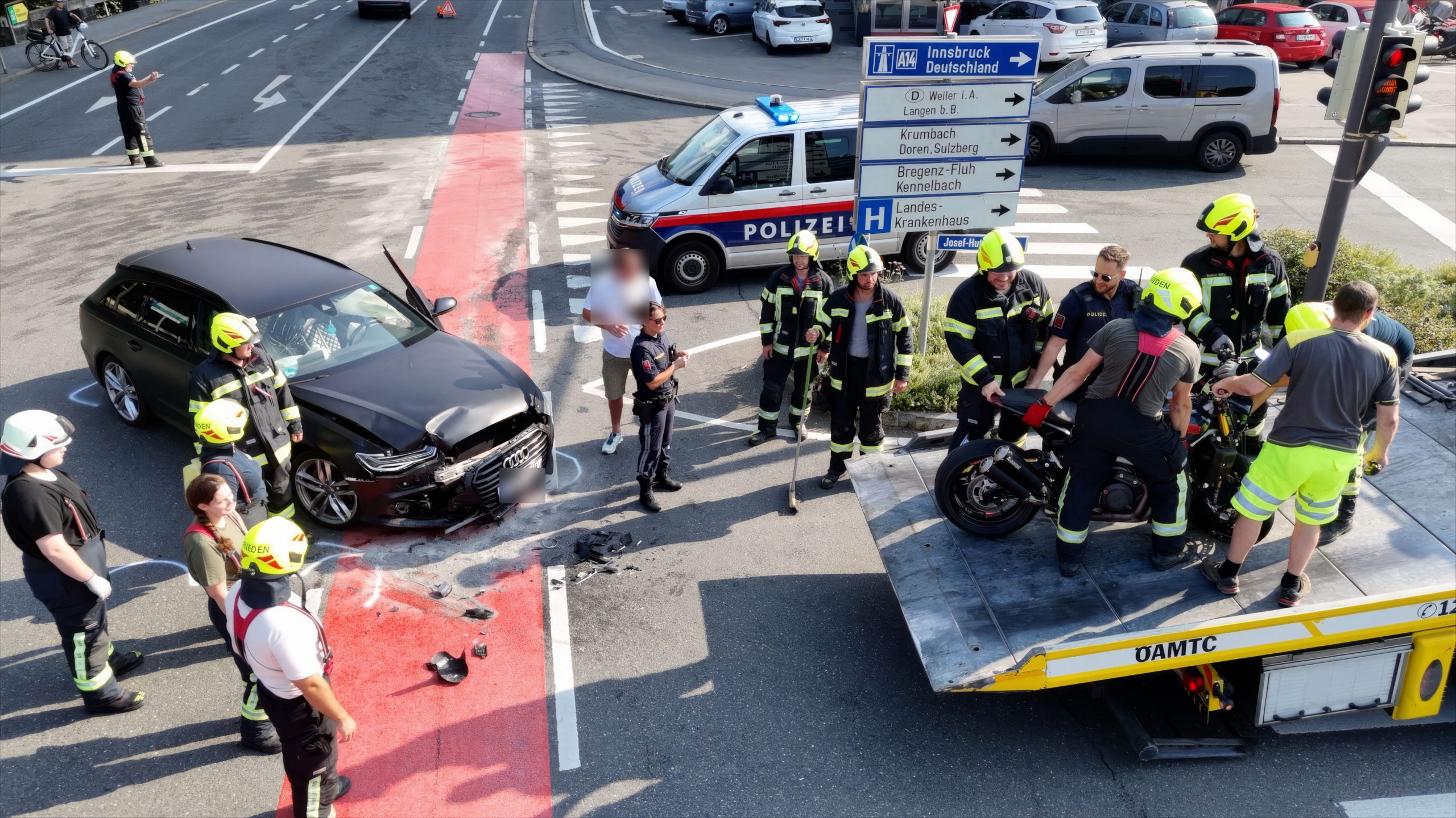 Motorrad kollidiert in Bregenz frontal mit Pkw – Zweiradlenker verletzt