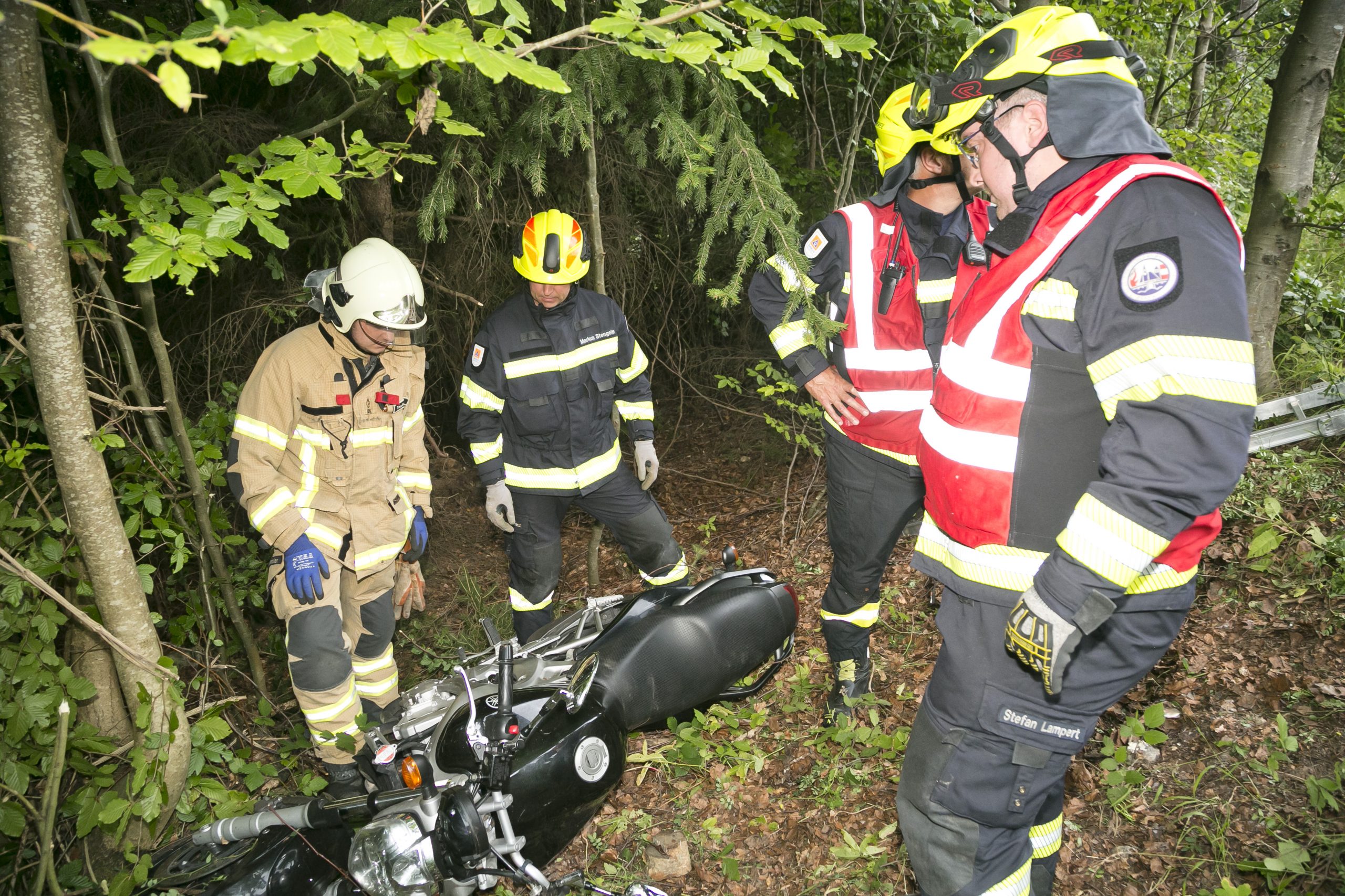 • Unfallhergang: Fahrer kam in Kurve von Fahrbahn ab, stürzte 7 Meter in Waldstück