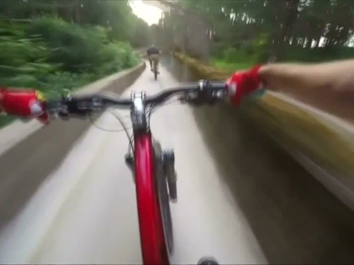 Die olympische Bobbahn der Winterspiele 1984 in Sarajevo hat eine neue Bestimmung gefunden. Sie dient waghalsigen Mountainbikern als Rennstrecke. Einer von ihnen stellte jetzt dieses Video ins Netz. Darauf ist zu sehen, wie der Hobby-Filmer gemeinsam mit einem Freund die Bobbahn ins Tal rast. Die Radfahrer erreichten dabei nach eigenen Angaben Geschwindigkeiten von mehr als 60 Stundenkilometern.