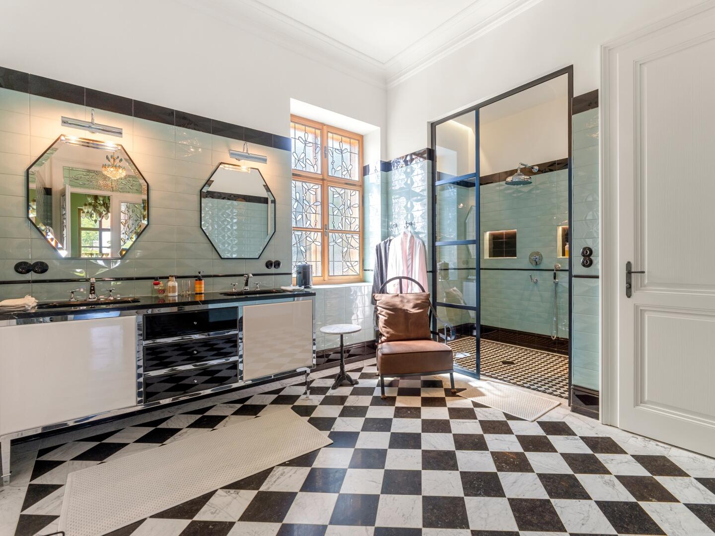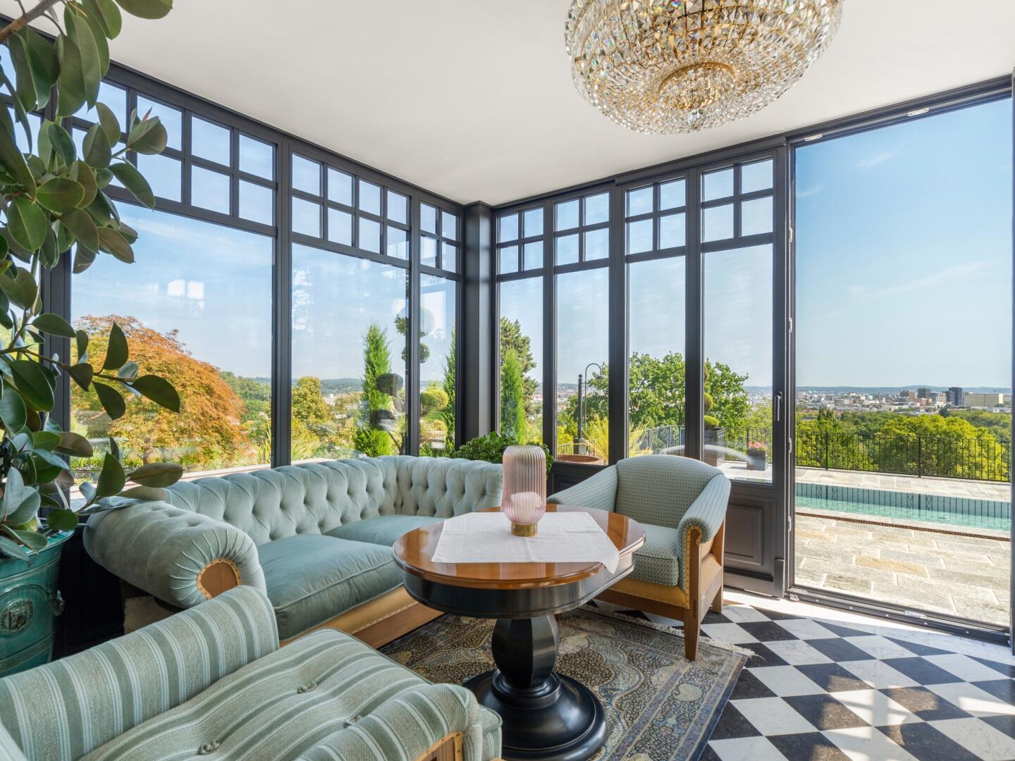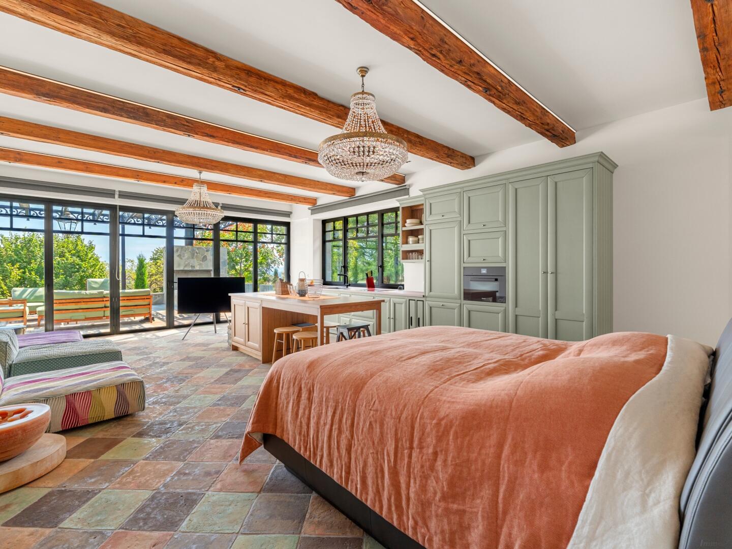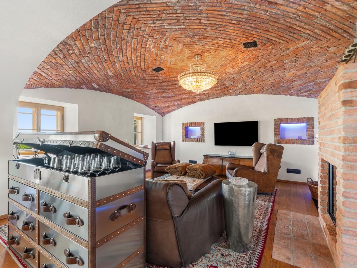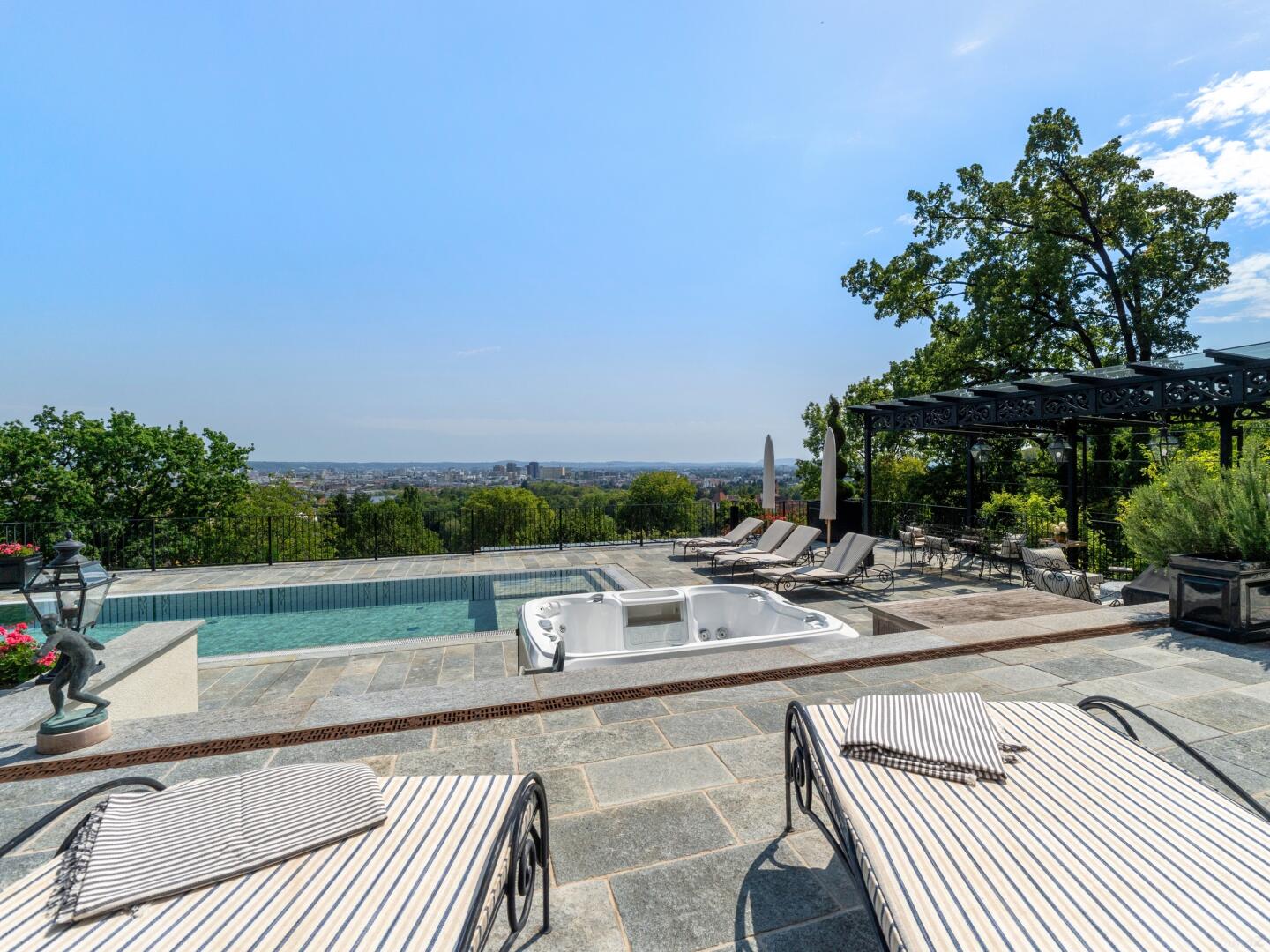 Zum Anwesen gehört ein Poolhaus mit beheiztem 12-mal-4-Meter-Pool, ein großzügiger Wohnweinkeller sowie ein separates Gästeapartment mit eigener Küche und Bad. Insgesamt verfügt die Villa über neun Zimmer und mehrere Bäder.
